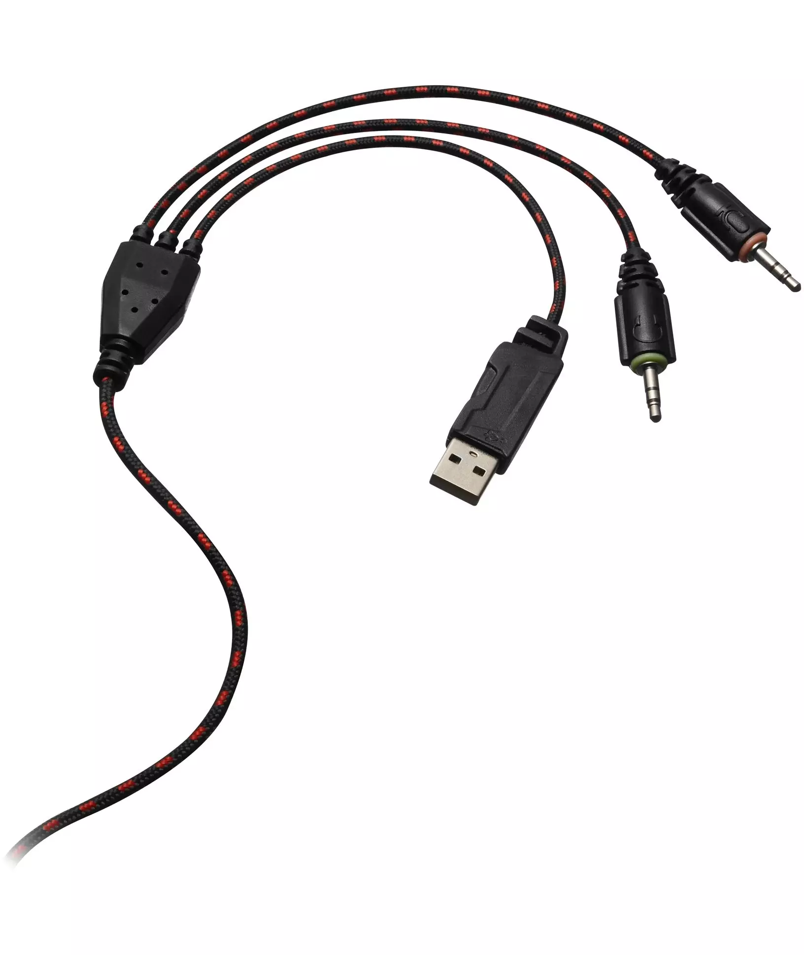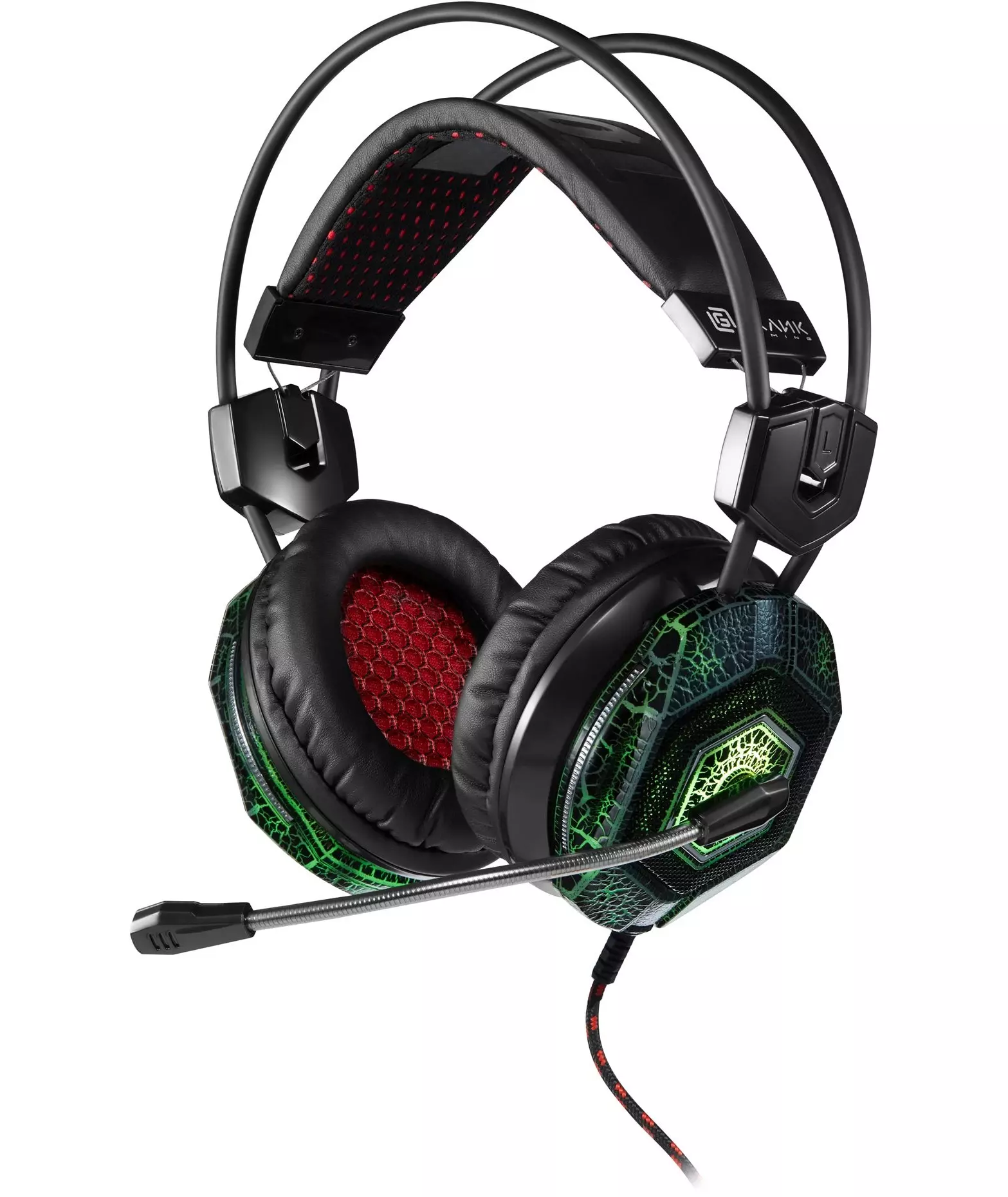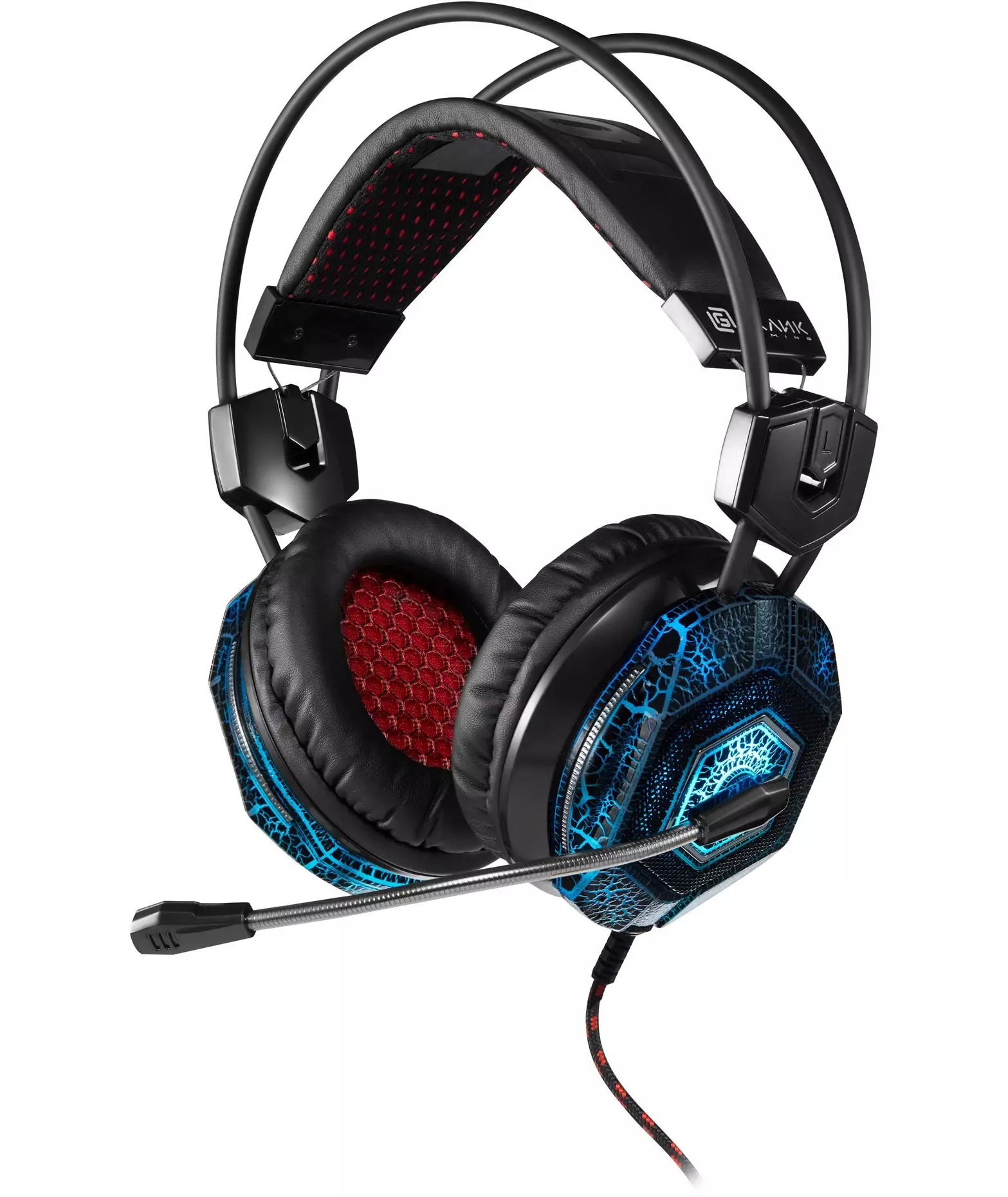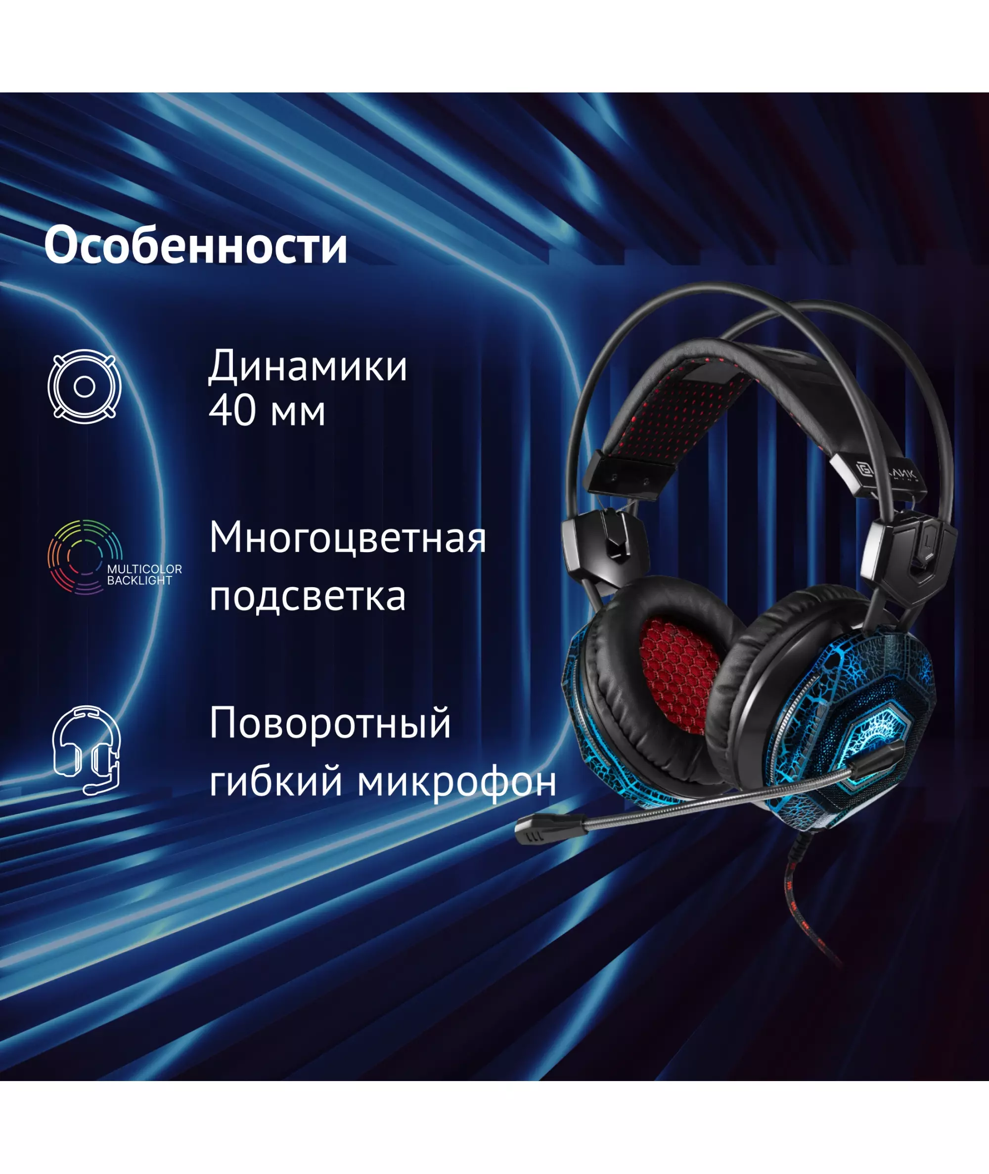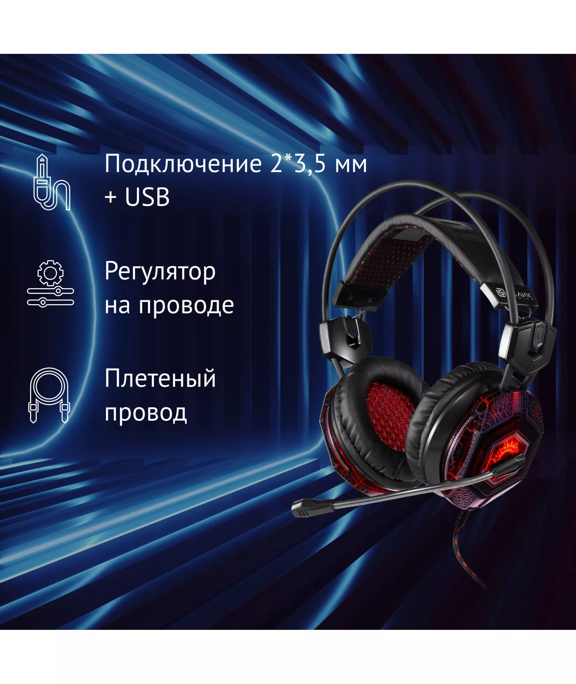 | Особенности | Многоцветная динамическая подсветка наушников, адаптивное оголовье, микрофон на гибкой поворотной ножке, усиленный плетеный провод, управление звуком на проводе |