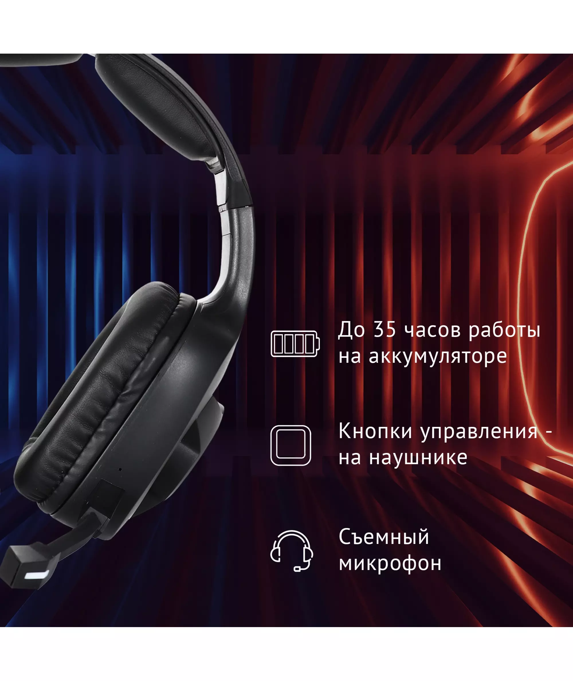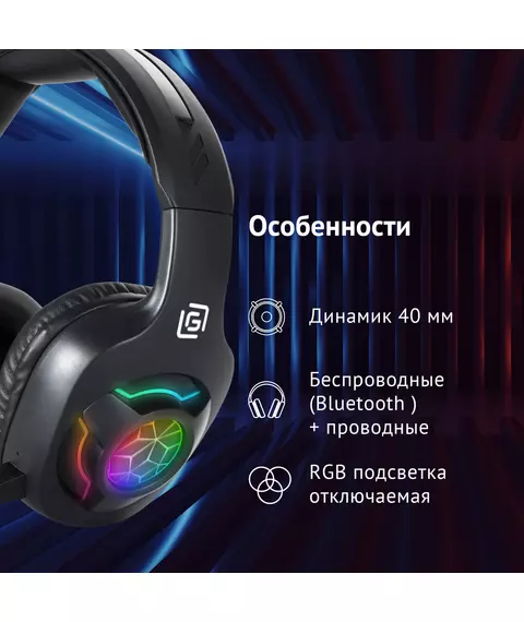 | Особенности | Игровая гарнитура с поддержкой проводного и беспроводного режимов. До 35 часов работы в беспроводном режиме. Работает с игровыми приставками. Отключаемая RGB подсветка, съемный микрофон. Поддерживает подключение по BlueTooth. Универсальное применение - игры, музыка, общение. |