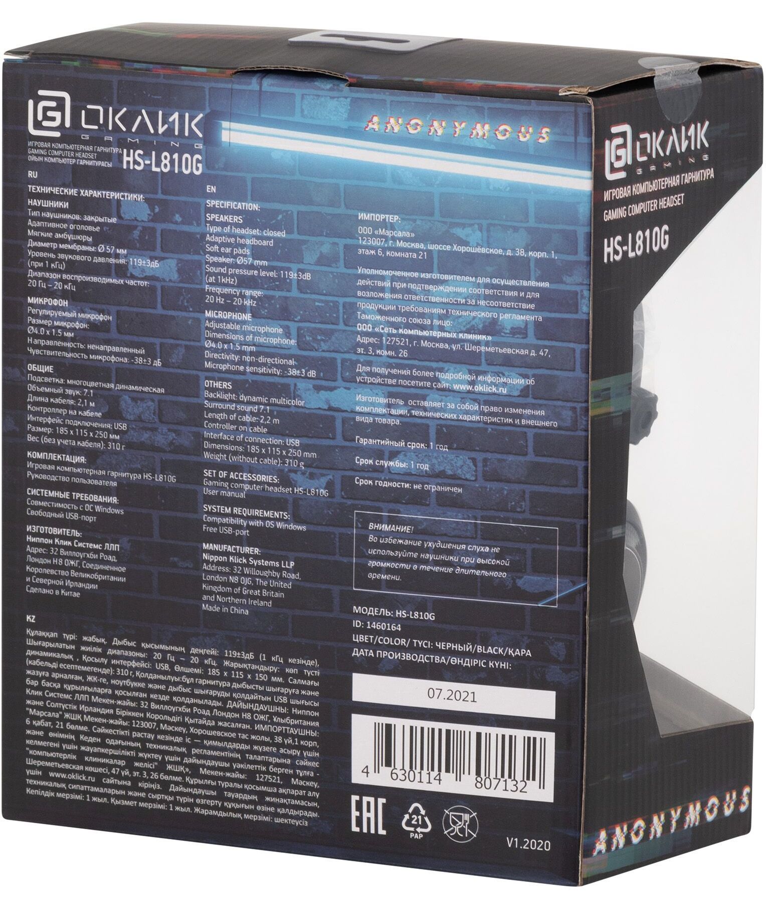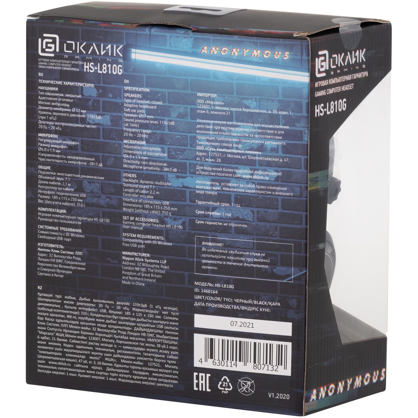 Наличие товара Oklick HS-L810G ANONYMOUS [1460164]