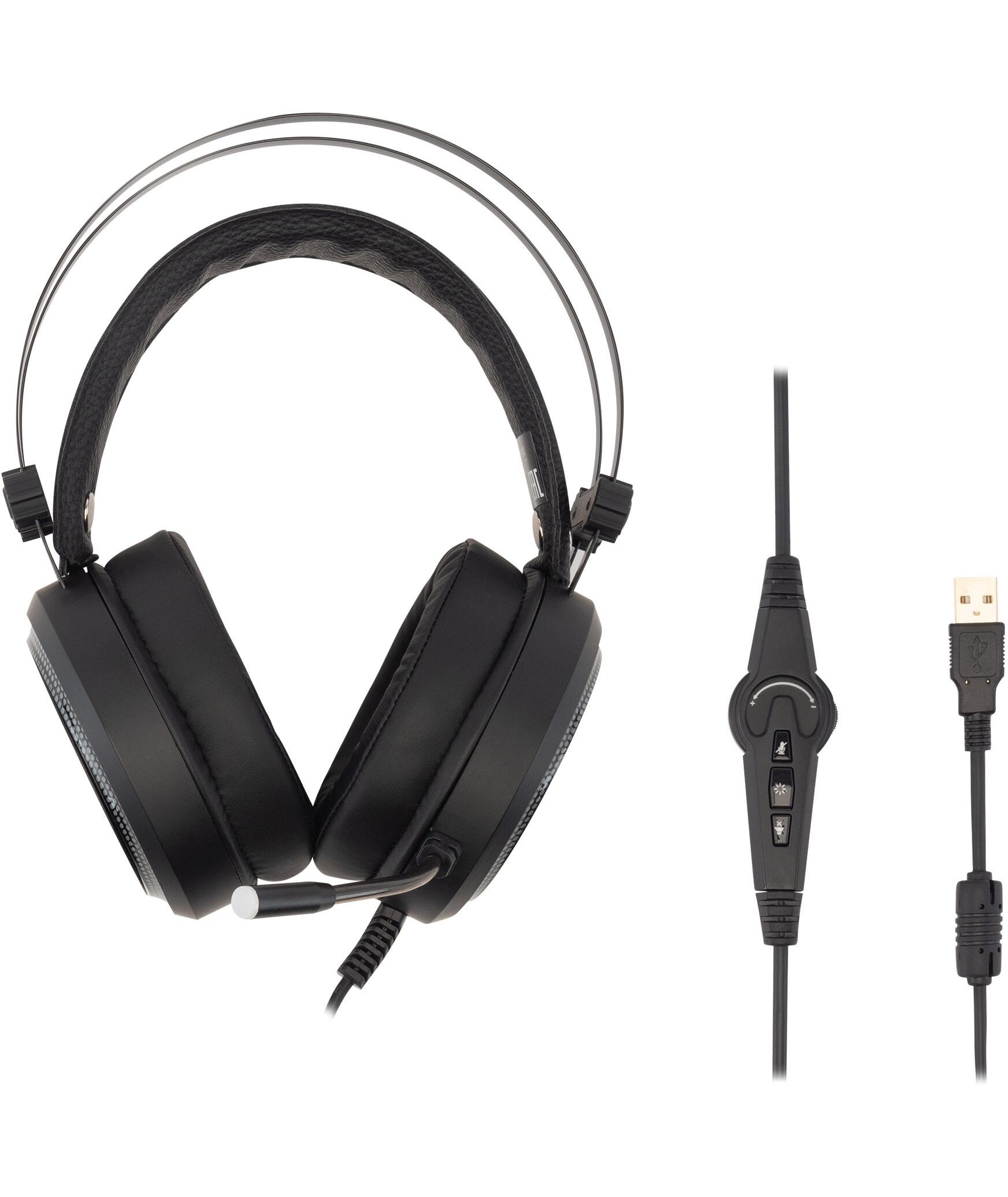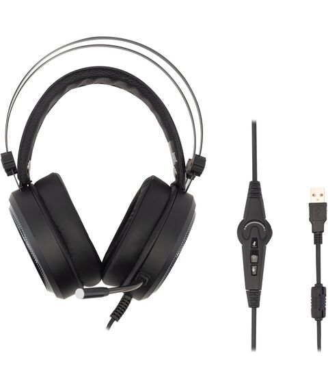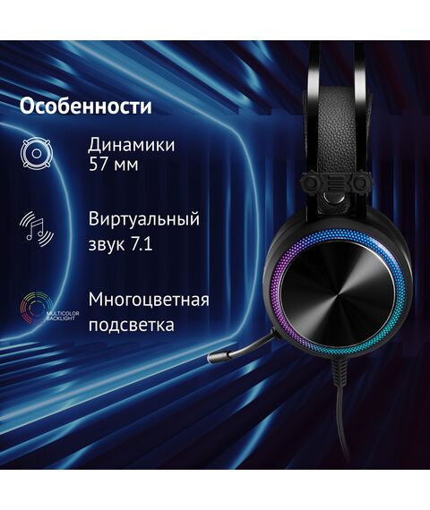 | Особенности | Игровая гарнитура с виртуальным звуком 7.1, динамики 57 мм!. Управление громкостью динамиков, отключение микрофона и подсветкой на проводе, Усиленный плетеный кабель с ферритовым фильтром, Адаптивное оголовье с металлическими направляющими, Пассивное шумоподавление микрофона |