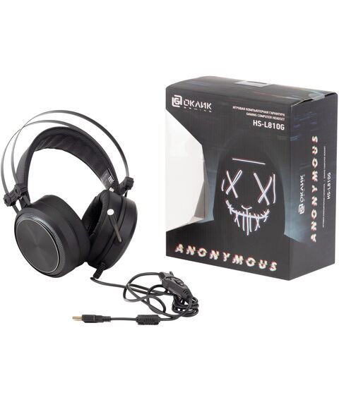 Наушники с микрофоном Oklick HS-L810G ANONYMOUS черный 2.2м мониторные оголовье [1460164]