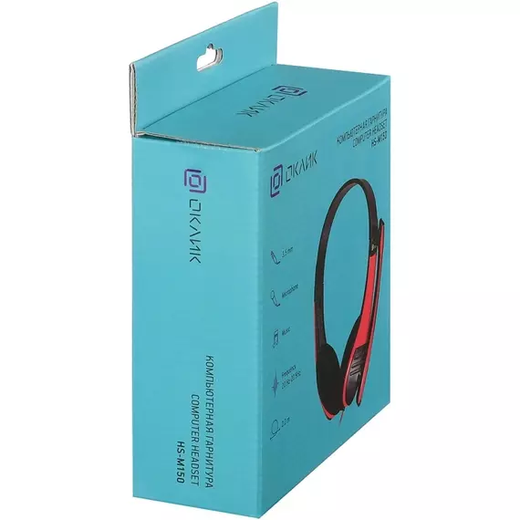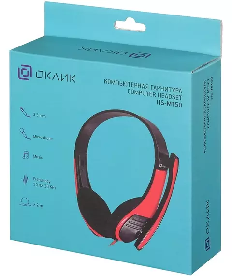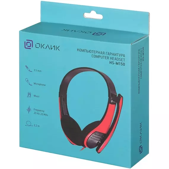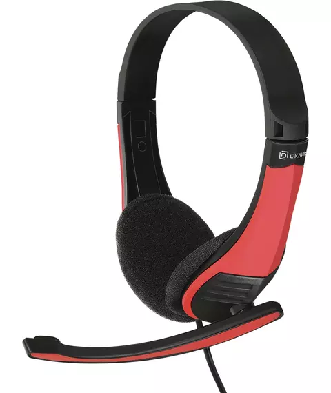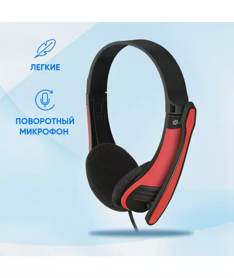 Наушники с микрофоном Oklick HS-M150 черный/красный 2.2м накладные оголовье [359486]