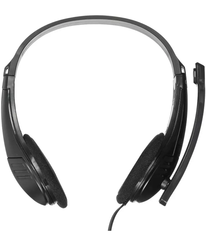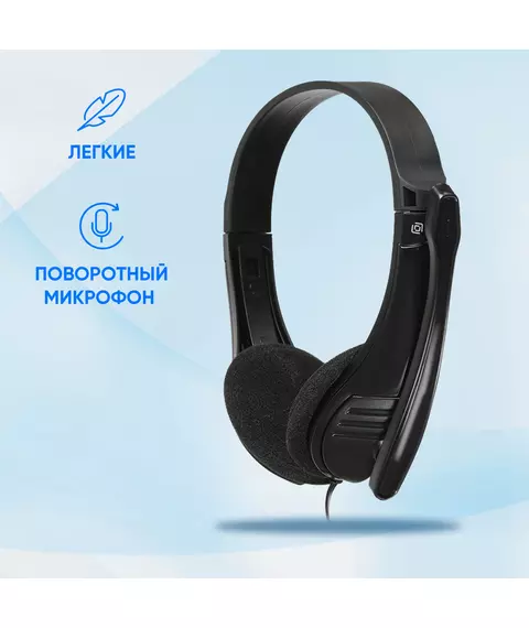 | Особенности | Удобная легкая компьютерная гарнитура с поворотным микрофоном, регулируемым оголовьем и длинным проводом |