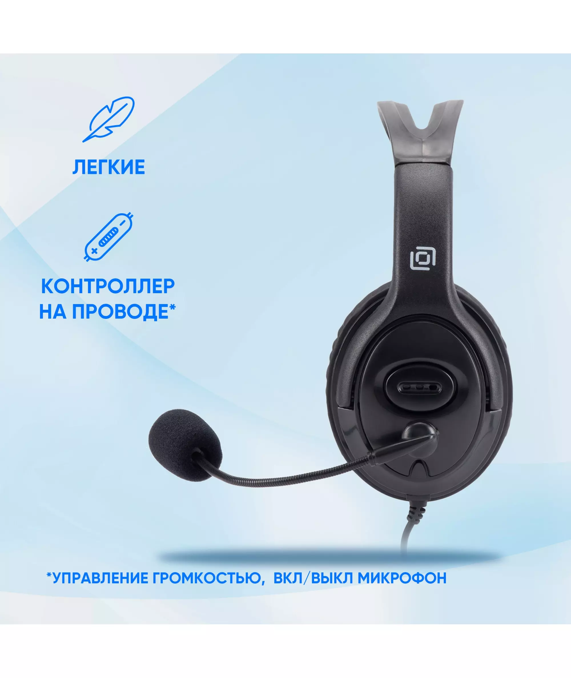 | Особенности | Универсальная компьютерная гарнитура, адаптивное оголовье, мягкие закрытые амбушюры, поворотный микрофон на гибкой ножке, на проводе - удобный контроллер громкости + функция Mute для микрофона. |