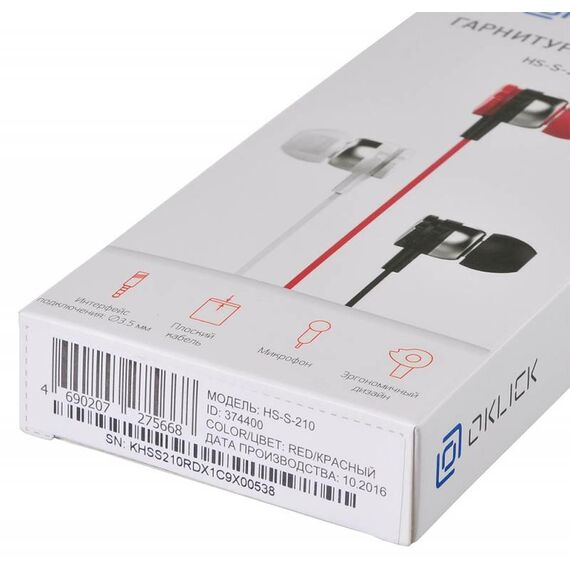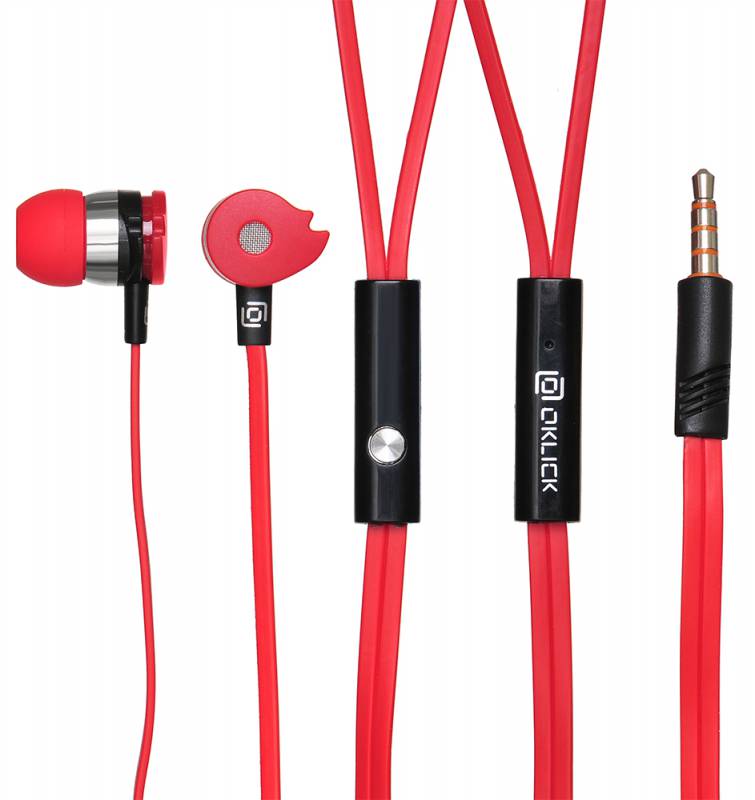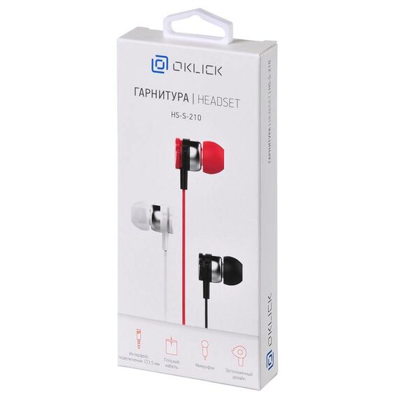 Гарнитура Oklick HS-S-210 1.2м красный проводные в ушной раковине [D1R]