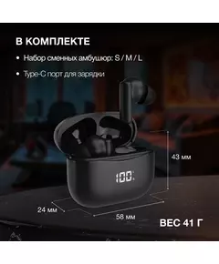 Беспроводные внутриканальные наушники; передача сигнала–Bluetooth 5.4; Степень пылевлагозащиты IP-IPX4; Мин./макс. воспроизводимая частота 20 Гц/20000 Гц; Сопротивление (импеданс)-16 Ом; Мощность-10 мВт; Тип индикатора заряда-LED; номинальный вход/выход кейса- 5В-800мА/5В-340мА Характеристики...