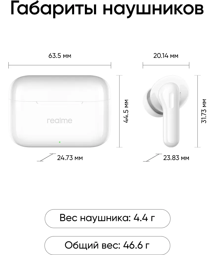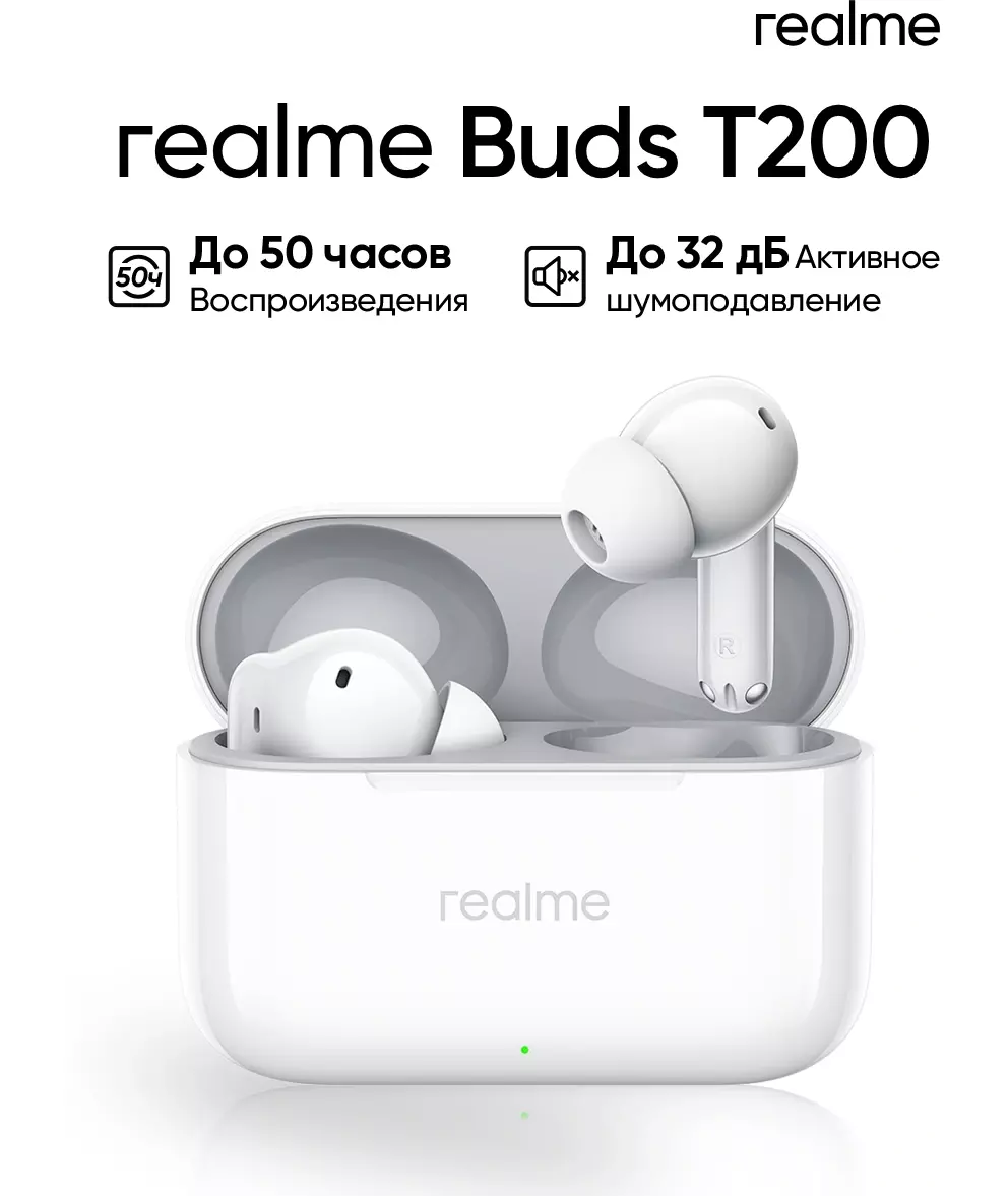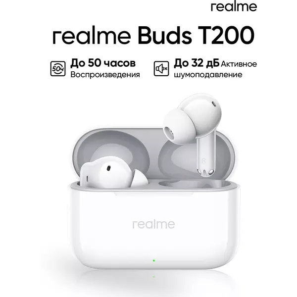 Гарнитура внутриканальные Realme Buds T200 белый беспроводные bluetooth в ушной раковине [6941764462076]
