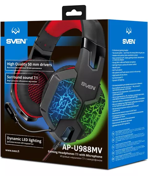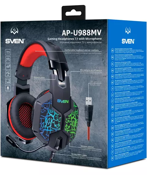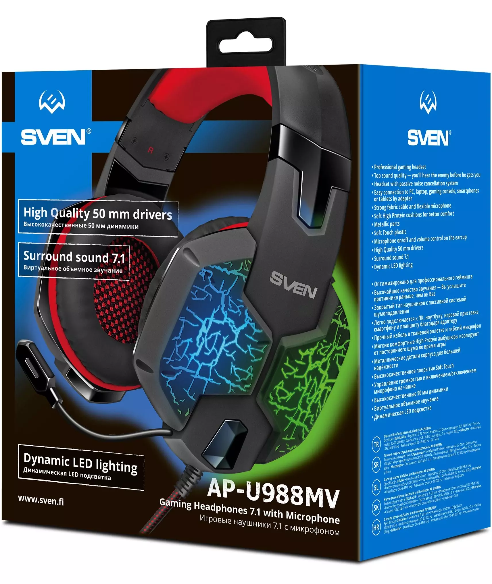 Наушники с микрофоном SVEN AP-U988MV черный/красный 2.2м мониторные оголовье
