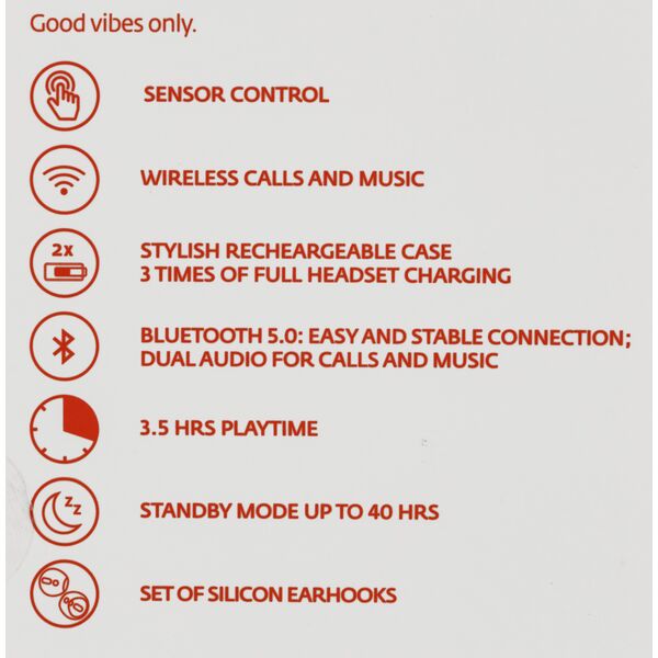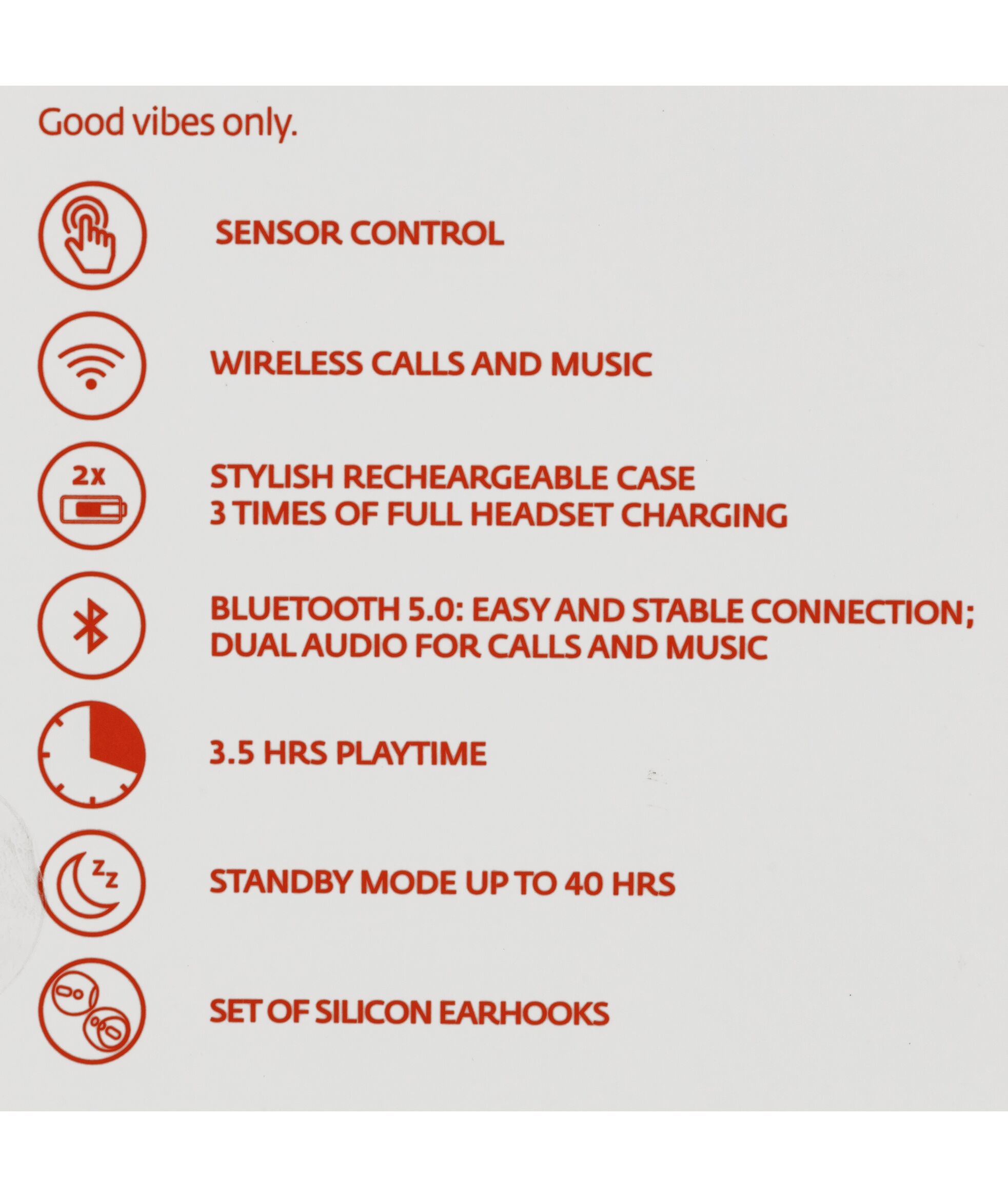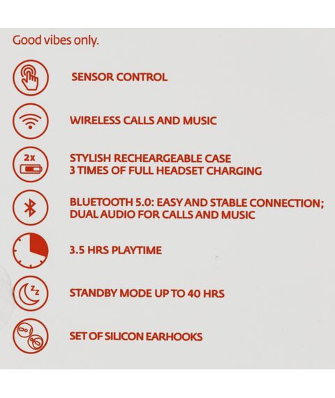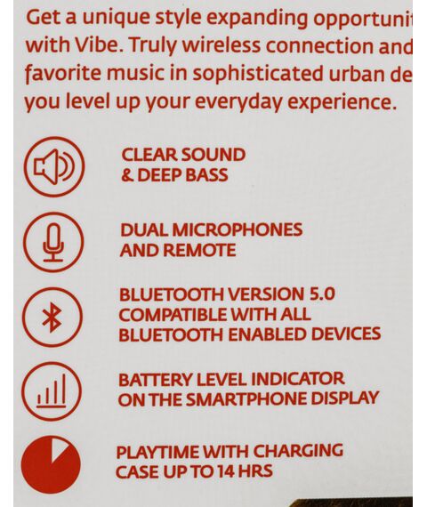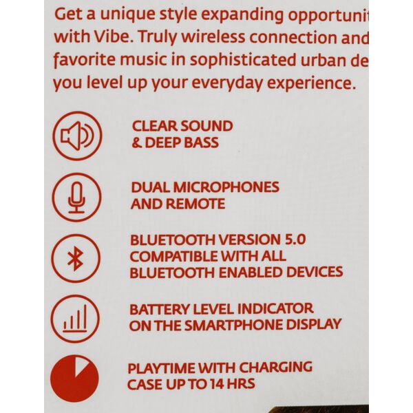 Ощутите полную свободу действий со стильными беспроводными наушниками VIBE. Сенсорный интерфейс позволяет управлять звонками и музыкой не вынимая телефон из кармана. Эргономичный зарядный кейс обеспечивает до 10 часов работы наушников. Глубокий бас, отличное качество звука, диаметр динамика 10 мм.