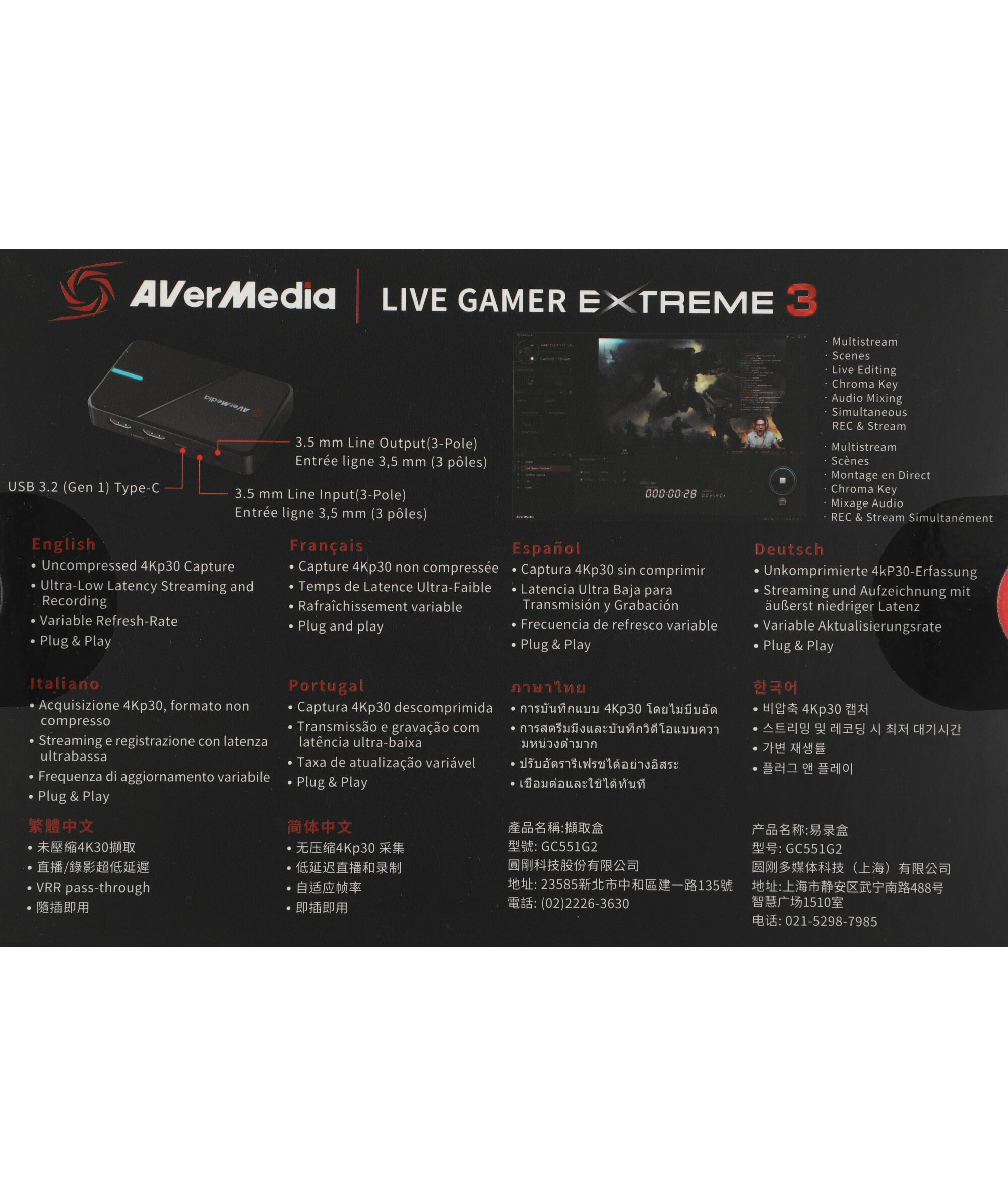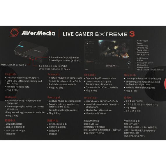 Карта видеозахвата AVerMedia GC551G2 внешний USB 3.1 LIVE GAMER EXTREME 3