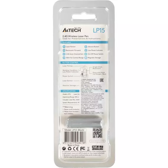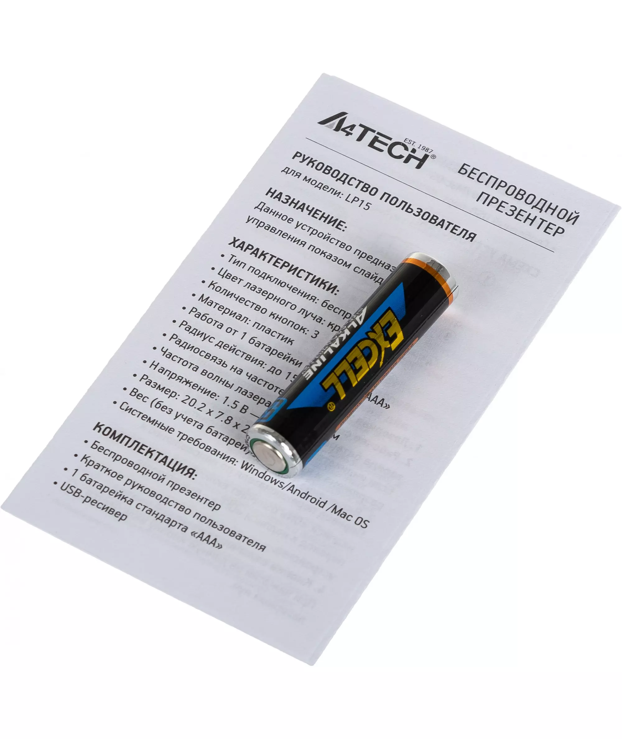 Презентер A4-Tech Fstyler LP15 Radio USB (15м) черный [LP15 BLACK]