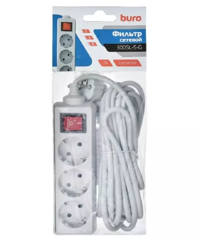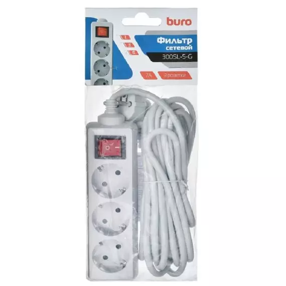 Сетевой фильтр BURO 300SL-5-G 5м (3 розетки) серый
