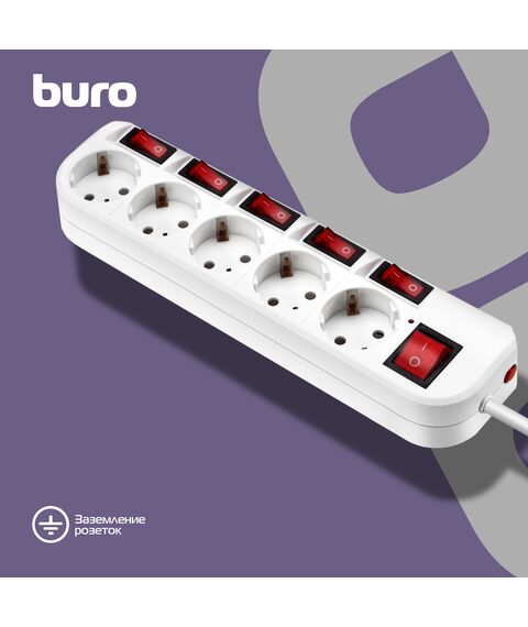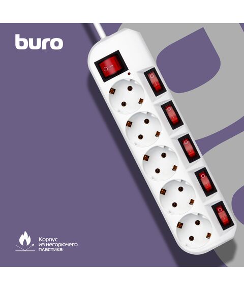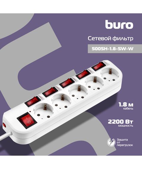 Сетевой фильтр Buro 500SH-1.8-SW-W 1.8м (5 розеток) белый (коробка)