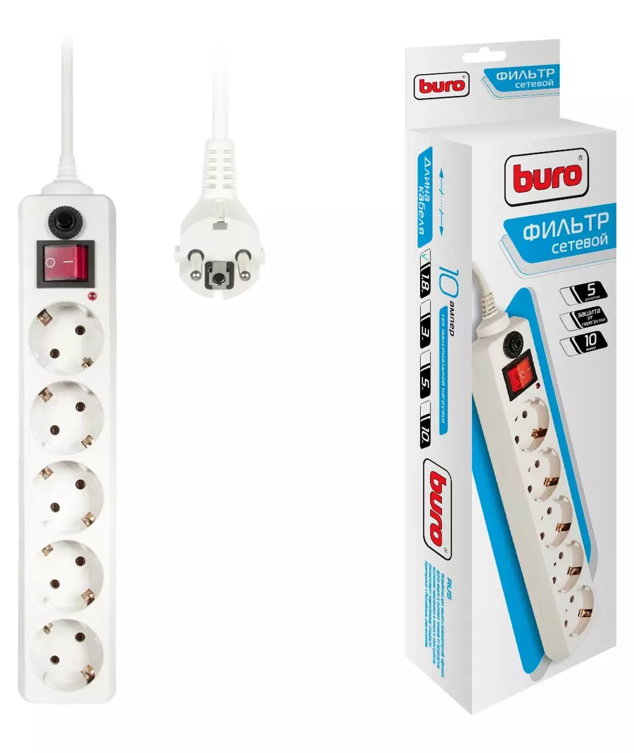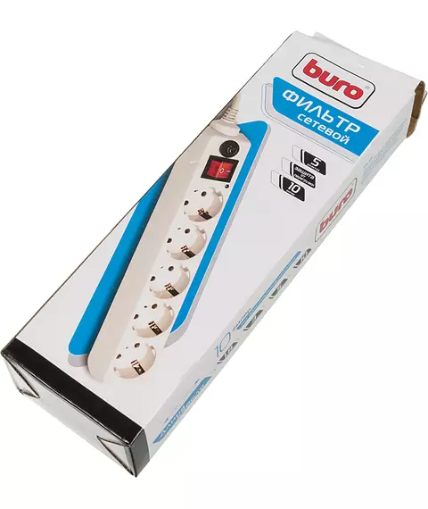 Сетевой фильтр BURO 500SH-1.8-W 1.8м (5 розеток) белый (коробка)