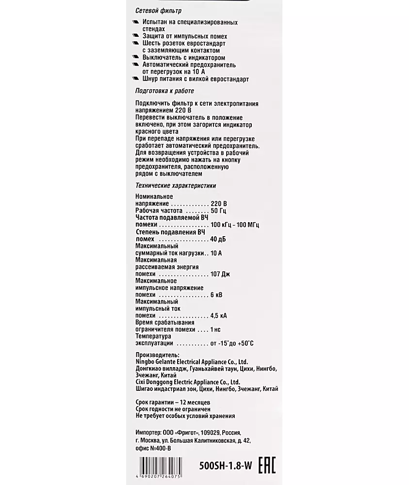 | Длина шнура | 1.8 м |