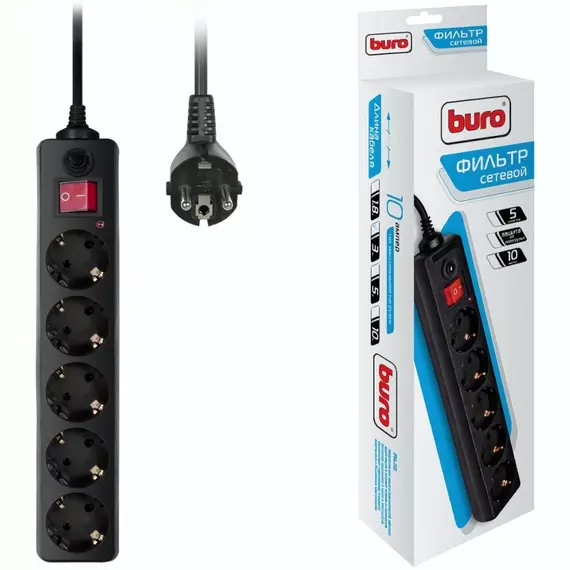 Сетевой фильтр BURO 500SH-3-B 3м (5 розеток) чeрный