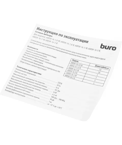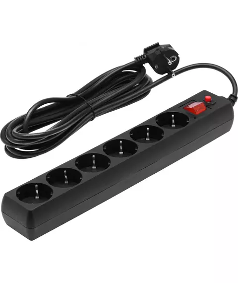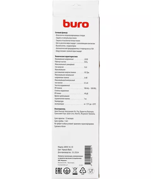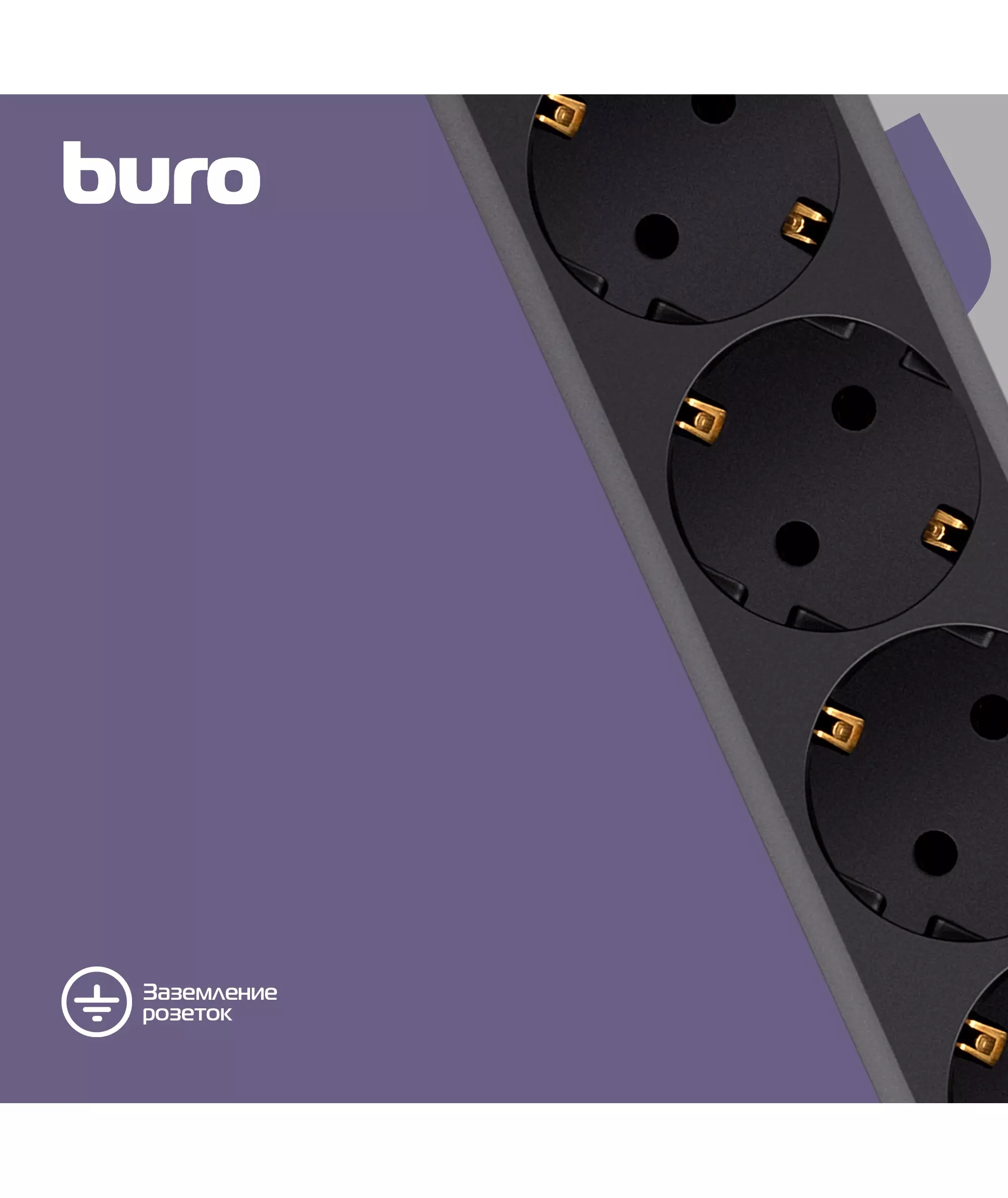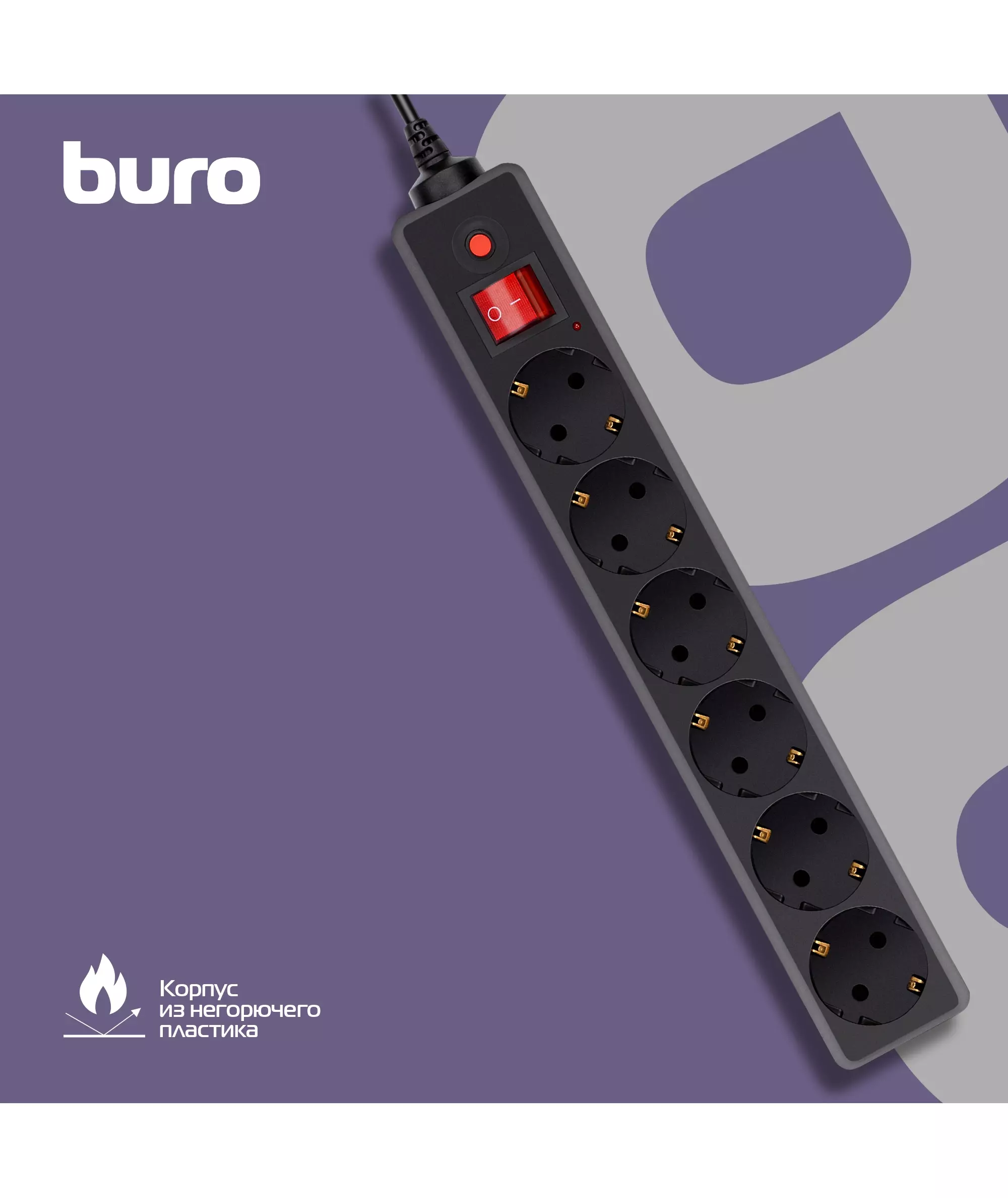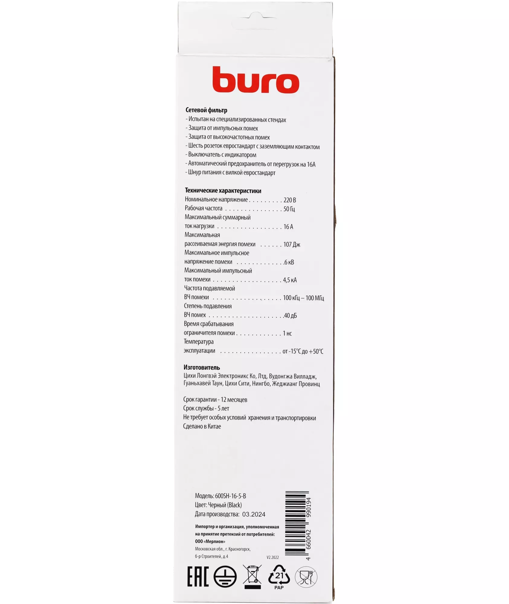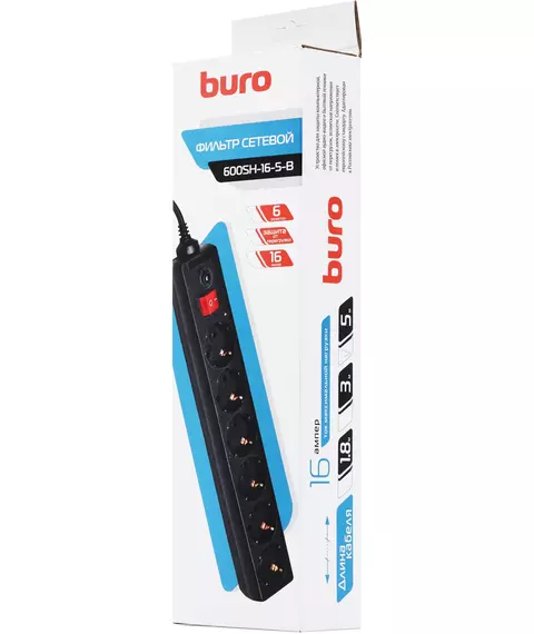 Сетевой фильтр BURO 600SH-16-5-B 5м (6 розеток) черный (коробка)