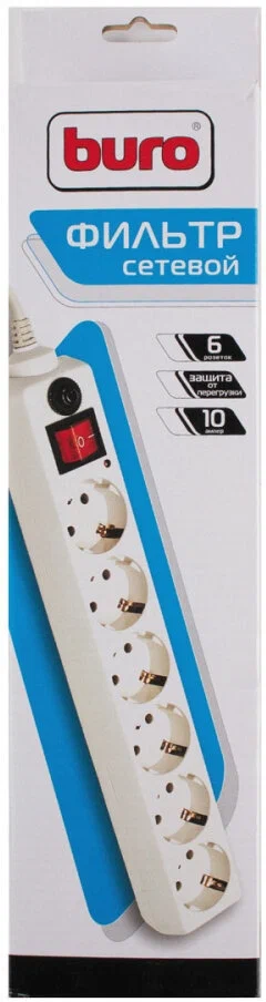 Сетевой фильтр BURO 600SH-5-W 5м (6 розеток) белый (коробка)