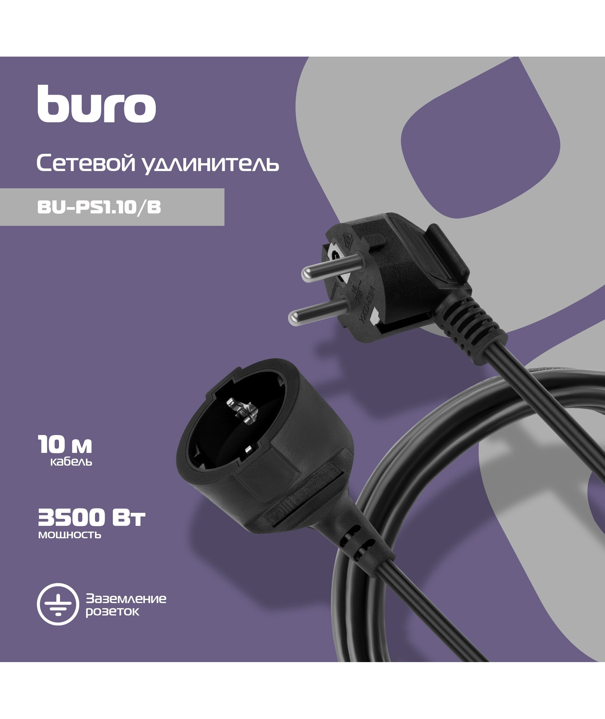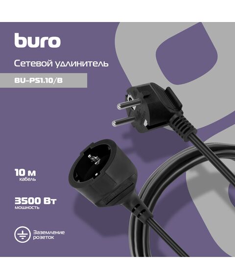 Сетевой удлинитель Buro BU-PS1.10/B 10м (1 розетка) черный (пакет ПЭ)