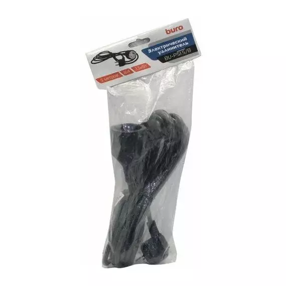 Сетевой удлинитель BURO BU-PS1.5/B 5м (1 розетка) черный (пакет ПЭ)
