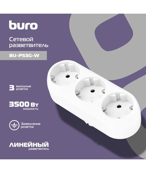 Сетевой разветвитель BURO BU-PS3G-W 3 розетки белый (пакет ПЭ)