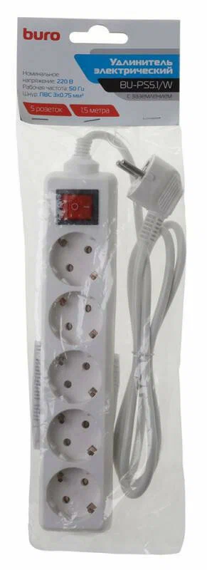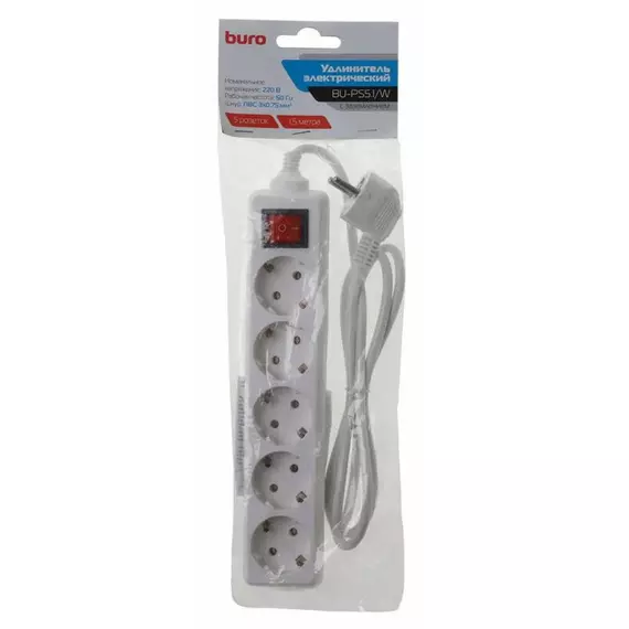 Сетевой фильтр BURO BU-PS5.1/W 1.5м (5 розеток) белый