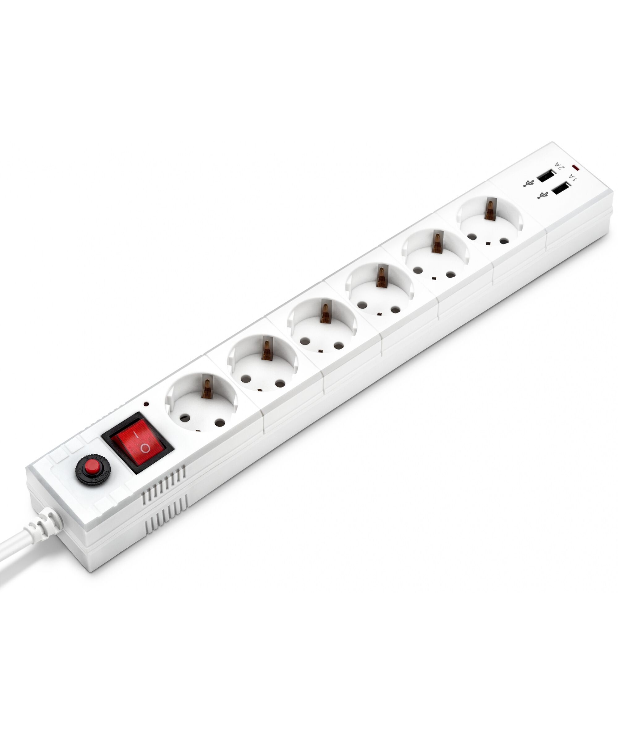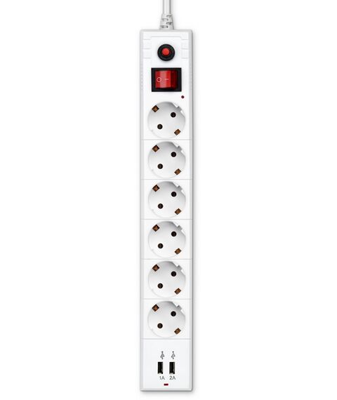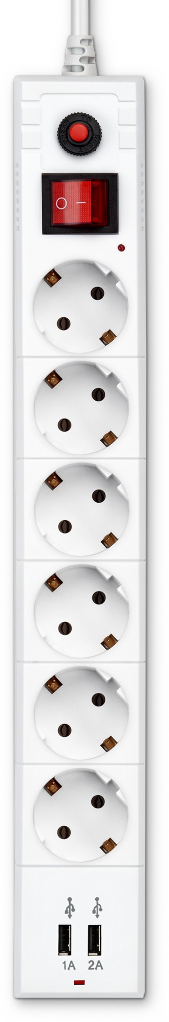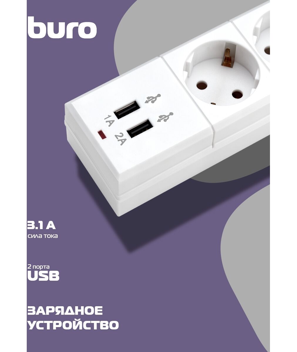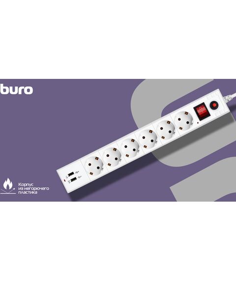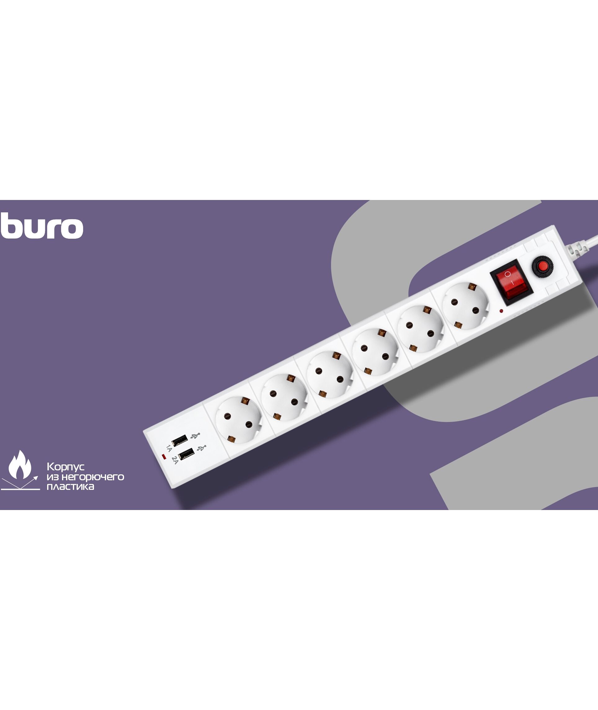 Сетевой фильтр BURO BU-SP3_USB_2A-W 3м (6 розеток) белый (коробка)