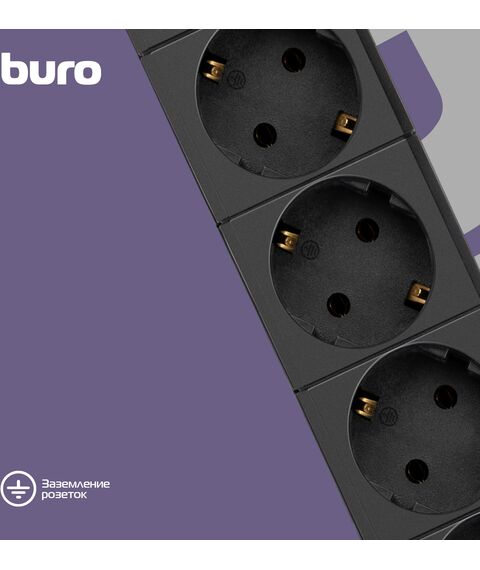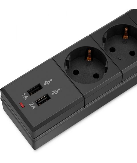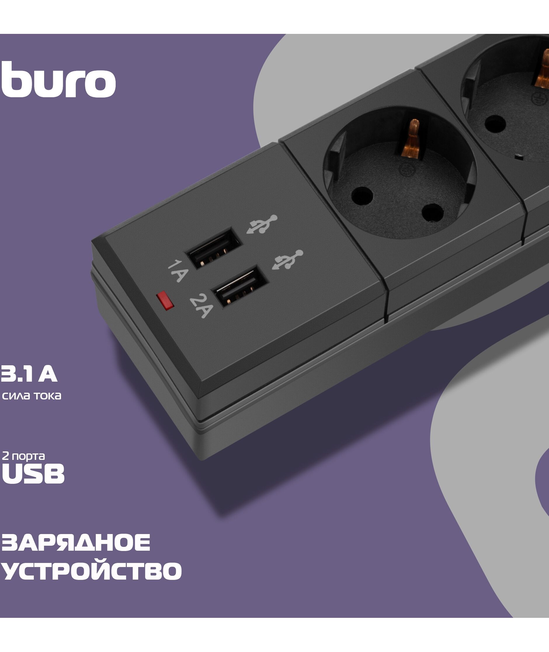 Сетевой фильтр BURO BU-SP5_USB_2A-B 5м (6 розеток) черный (коробка)