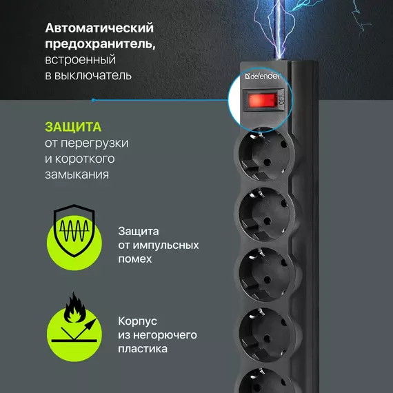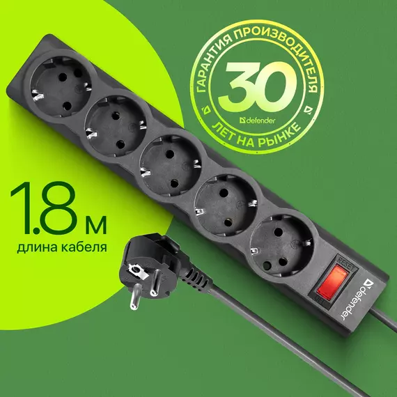 Сетевой фильтр Defender ES largo 1.8м (5 розеток) черный (коробка) [99497]