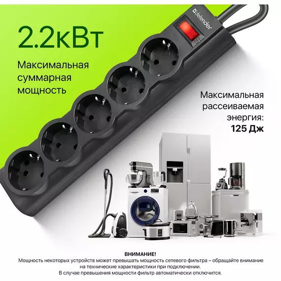 | Количество выходных розеток | 5 |