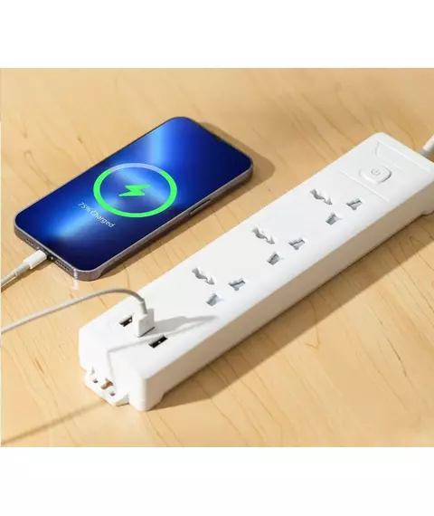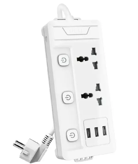 Сетевой фильтр Deli ET409 2м (2 розетки) белый (пакет ПЭ)