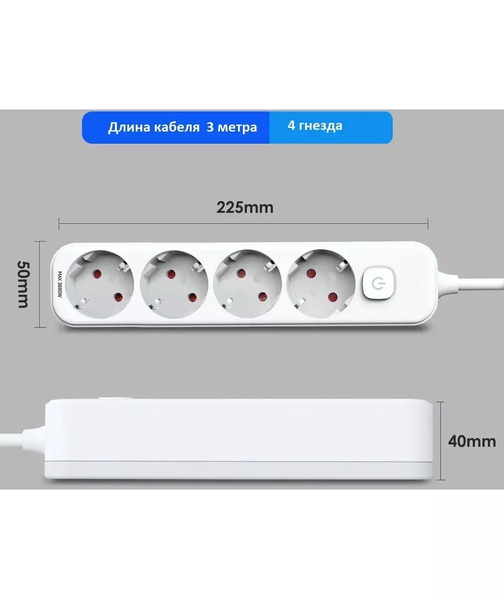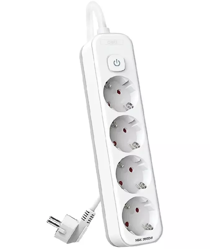 Сетевой фильтр Deli ET435 3м (4 розетки) белый (пакет ПЭ)