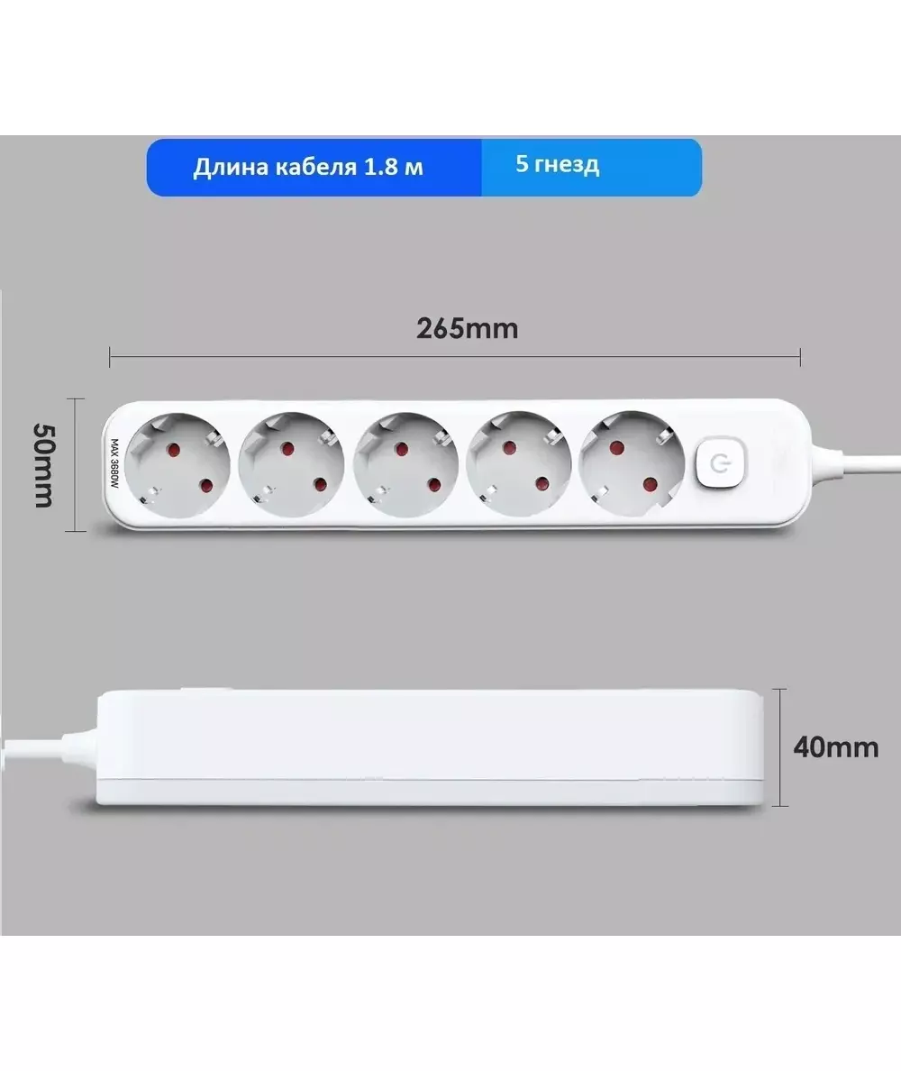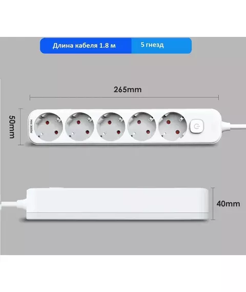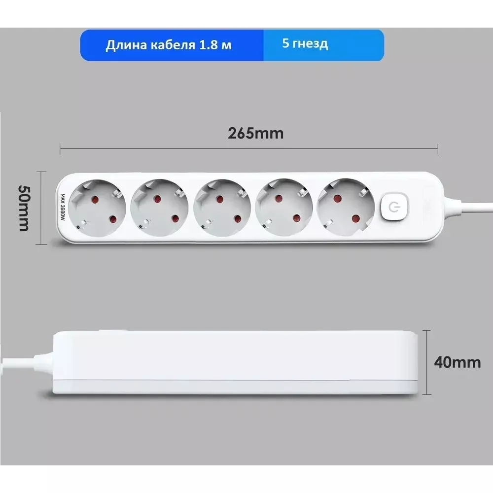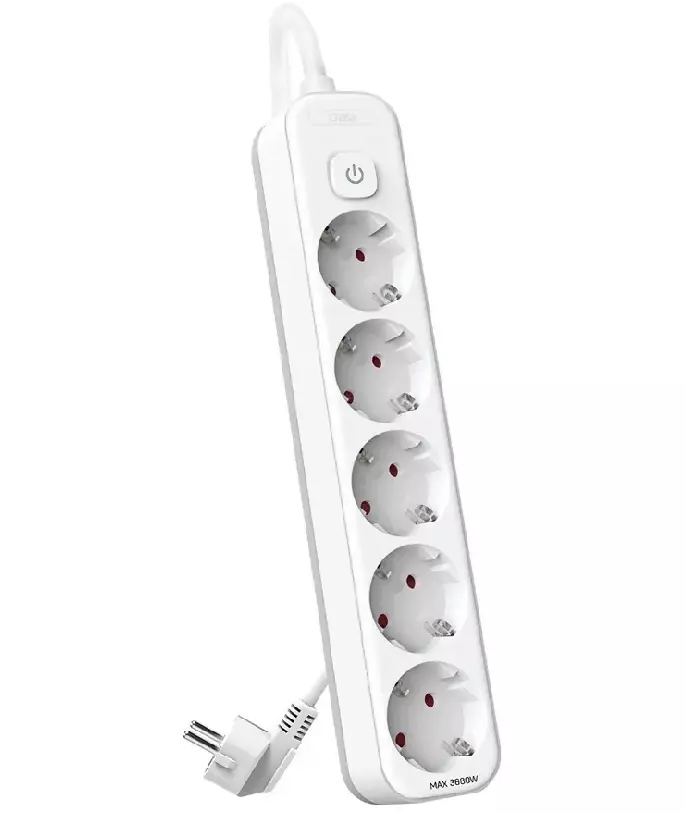 Сетевой фильтр Deli ET437 1.8м (5 розеток) белый (пакет ПЭ)