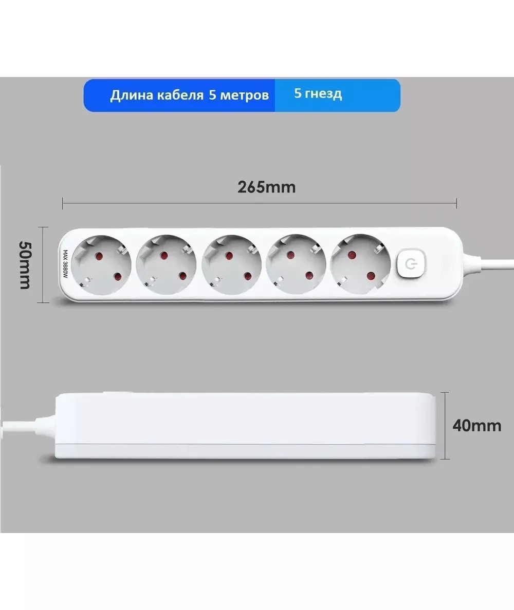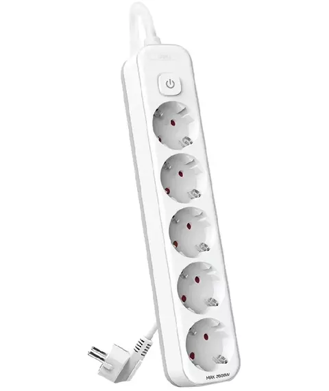 Сетевой фильтр Deli ET439 5м (5 розеток) белый (пакет ПЭ)