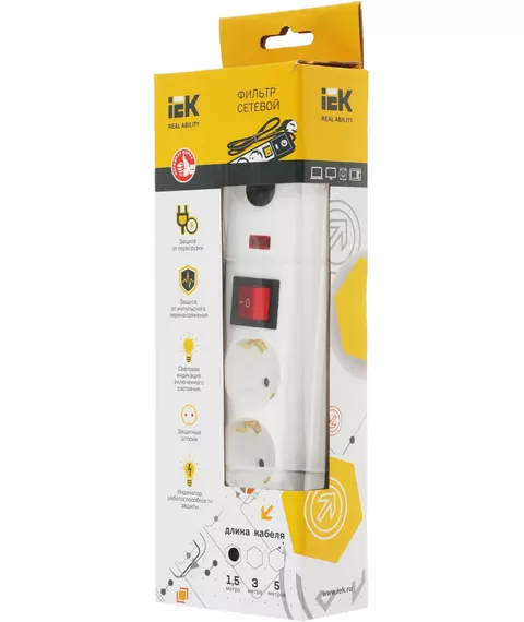Сетевой фильтр IEK СФ-03К 1.5м (3 розетки) белый (коробка) [WFP10-16-03-01-N]
