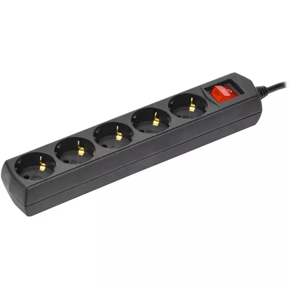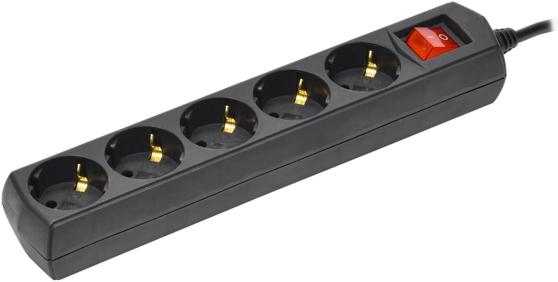 Сетевой удлинитель IEK У05В 3м (5 розеток) черный (пакет ПЭ) [WYP10-10-05-03-ZK-K02-G]