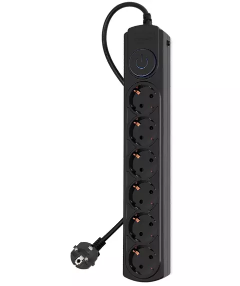 | Особенности | 6 евророзеток с заземлением. Входная вилка Schuko. Защита от перегрузки. Защита от импульсов высокого напряжения. Защита от перетирания провода в месте входа в корпус фильтра. Ударопрочный негорючий корпус. Кнопка питания с индикатором сети. |