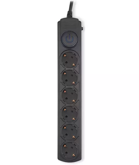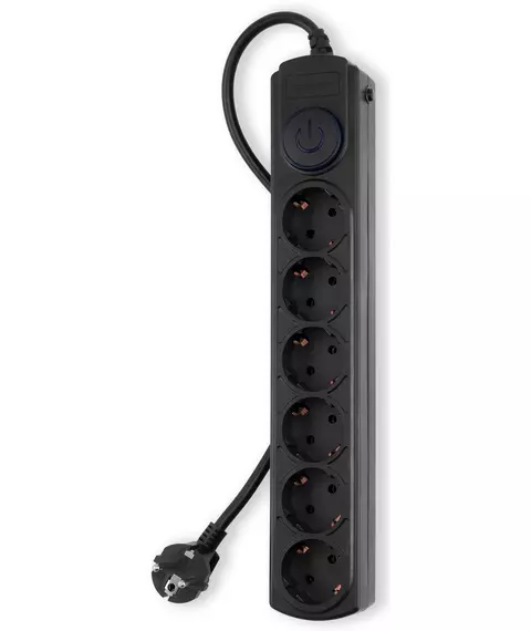 | Особенности | 6 евророзеток с заземлением. Входная вилка Schuko. Защита от перегрузки. Защита от импульсов высокого напряжения. Защита от перетирания провода в месте входа в корпус фильтра. Ударопрочный негорючий корпус. Кнопка питания с индикатором сети. |