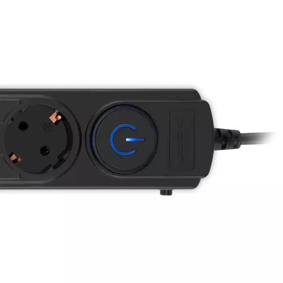 | Особенности | 6 евророзеток с заземлением. Входная вилка IEC 320 (для подключения к ИБП). Защита от перегрузки. Защита от импульсов высокого напряжения. Защита от перетирания провода в месте входа в корпус фильтра. Ударопрочный негорючий корпус. Кнопка питания с индикатором сети. |