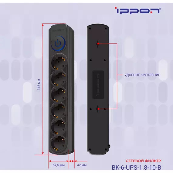 Сетевой фильтр Ippon BK-6-UPS-1.8-10-B 1.8м (6 розеток) черный (коробка)