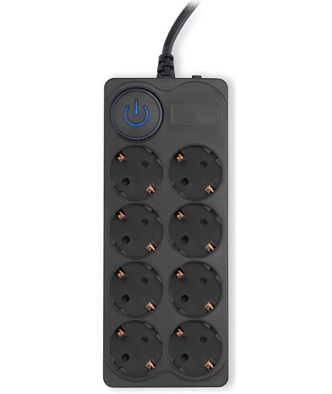 | Особенности | 8 евророзеток с заземлением. Входная вилка Schuko. Защита от перегрузки. Защита от импульсов высокого напряжения. Защита от перетирания провода в месте входа в корпус фильтра. Ударопрочный негорючий корпус. Кнопка питания с индикатором сети. |
