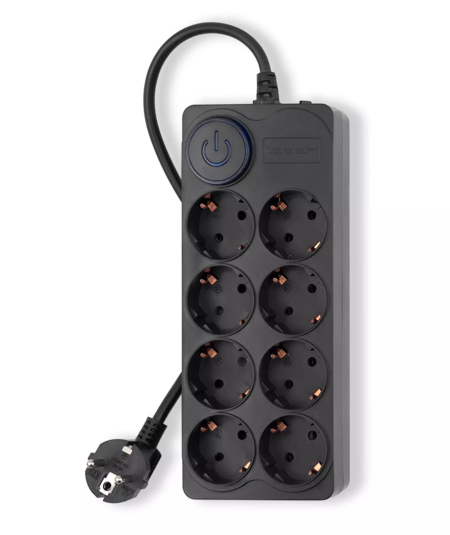 | Особенности | 8 евророзеток с заземлением. Входная вилка Schuko. Защита от перегрузки. Защита от импульсов высокого напряжения. Защита от перетирания провода в месте входа в корпус фильтра. Ударопрочный негорючий корпус. Кнопка питания с индикатором сети. |