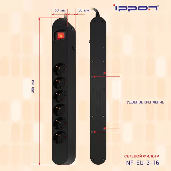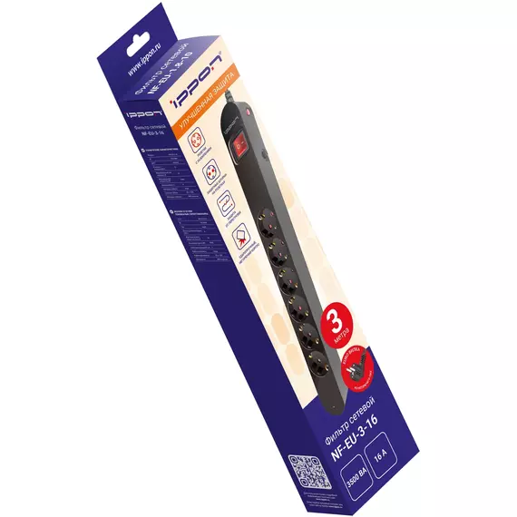 Сетевой фильтр Ippon NF-EU-3-16 3м (6 розеток) черный (коробка)