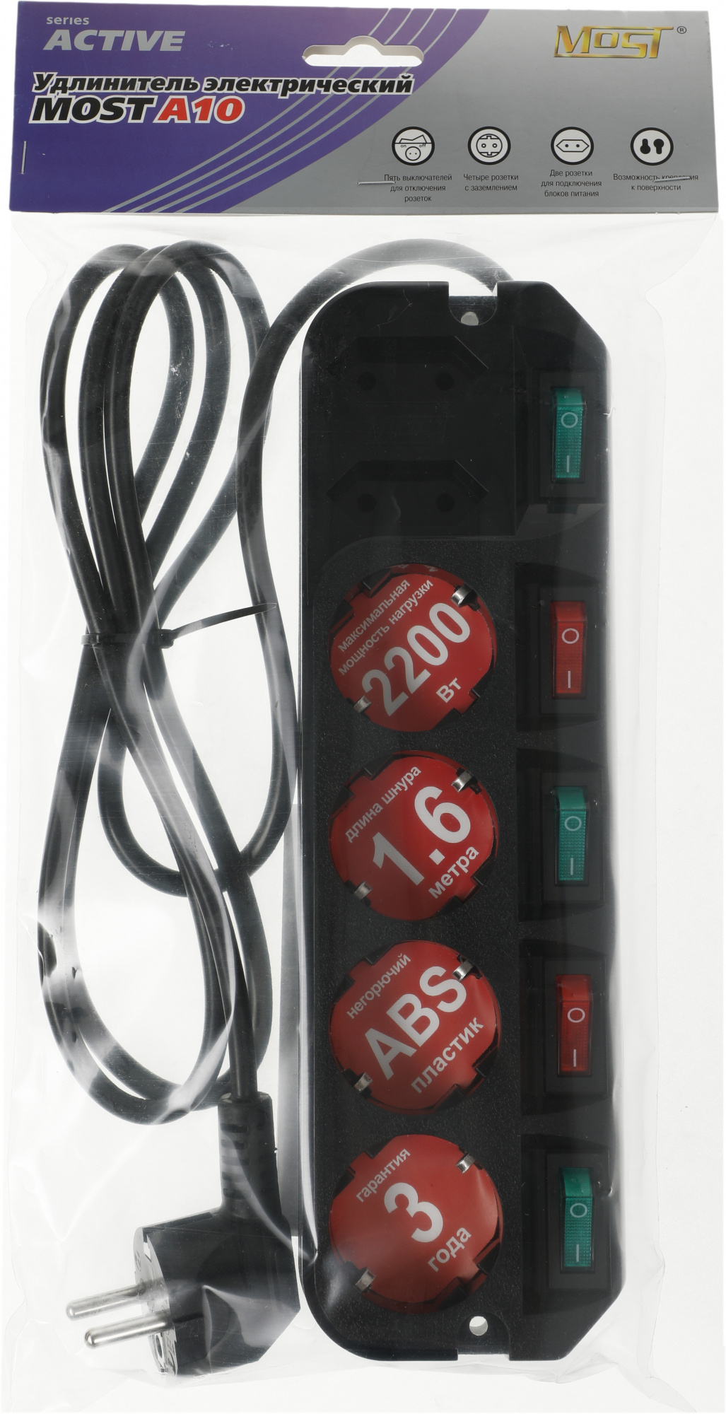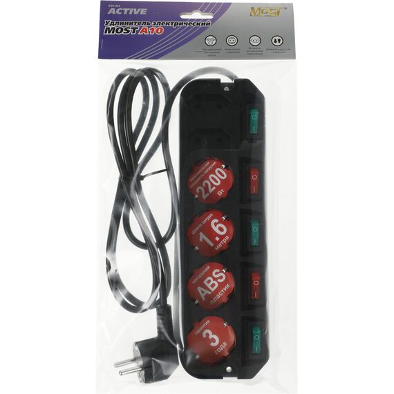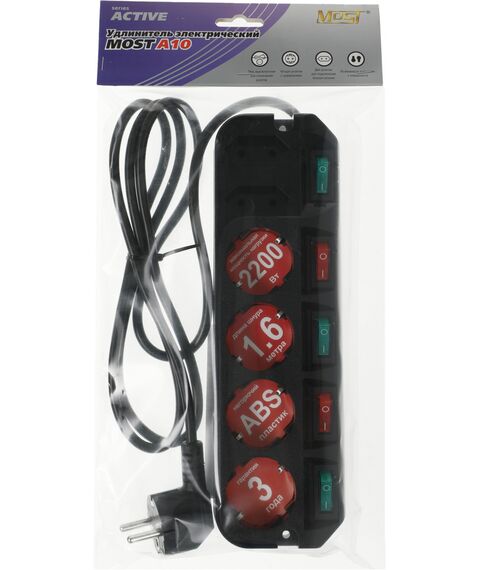 Сетевой удлинитель Most A10 1.6м (6 розеток) черный (коробка)
