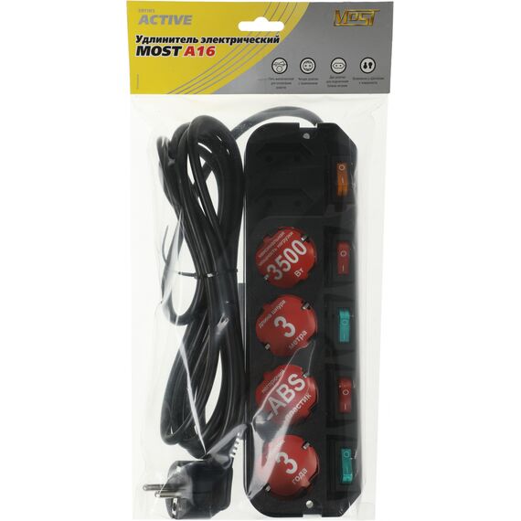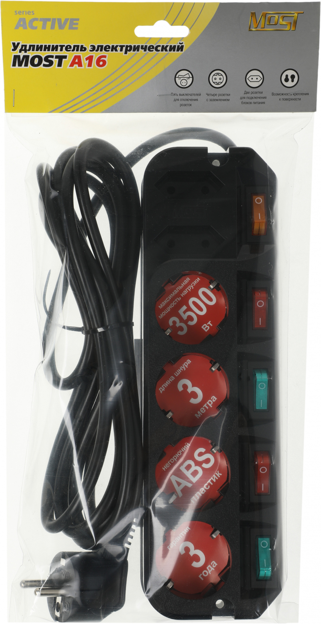Сетевой удлинитель Most A16 3м (6 розеток) черный (коробка)