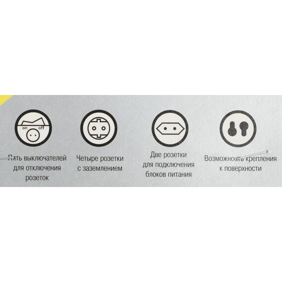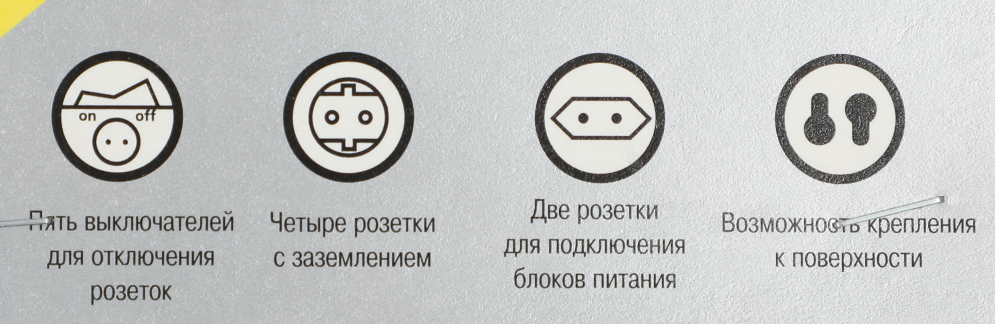 | Особенности | Удлинитель Most А16 предназначен для подключения бытовой техники к сети электропитания. У каждой из четырех евророзеток имеется мощный (16A) индивидуальный выключатель,который обеспечивает удобство обращения с электропитанием и экономит Ваше время. Две узкие розетки имеют общий выключатель. |