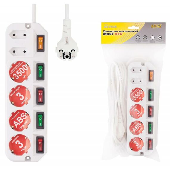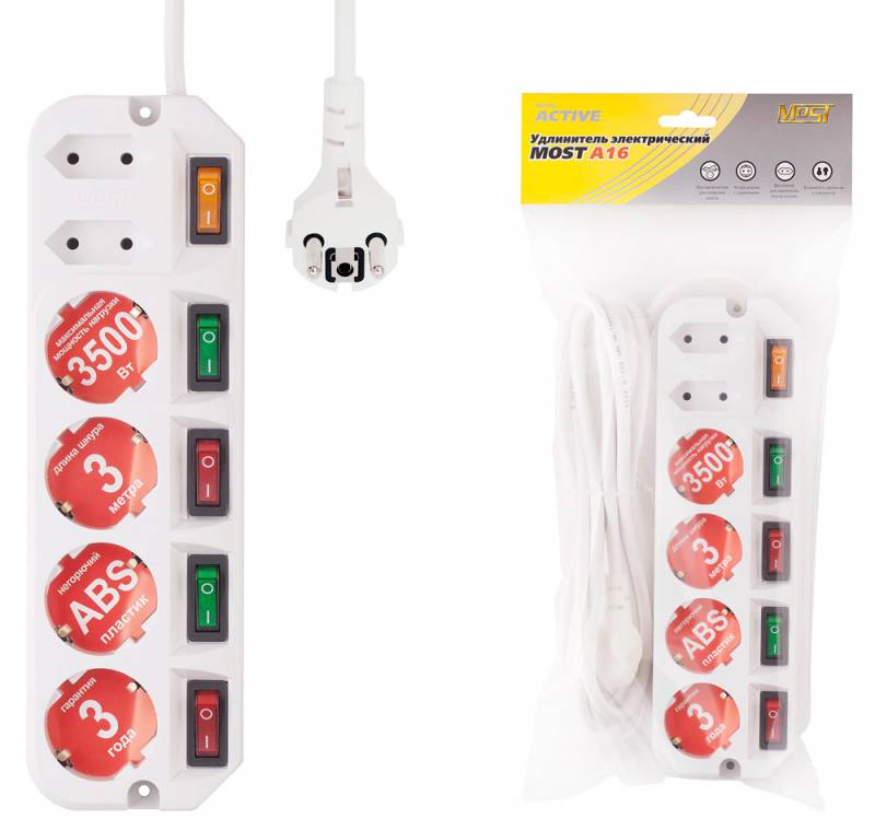 Сетевой удлинитель Most A16 1.6м (6 розеток) белый (коробка)