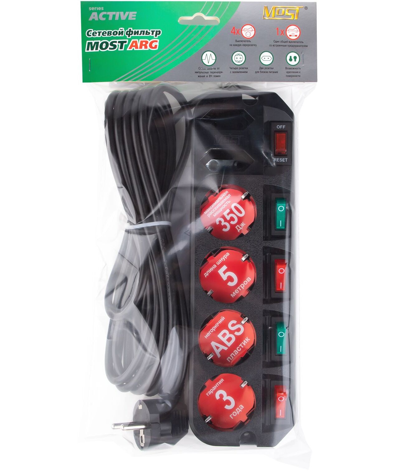 Сетевой фильтр Most ARG 5м 6 розеток черный (коробка)