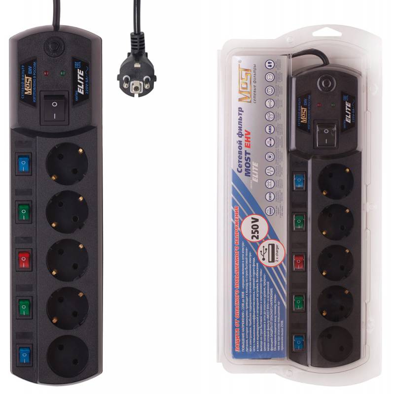 Сетевой фильтр Most EHV 5м 5 розеток черный (коробка)