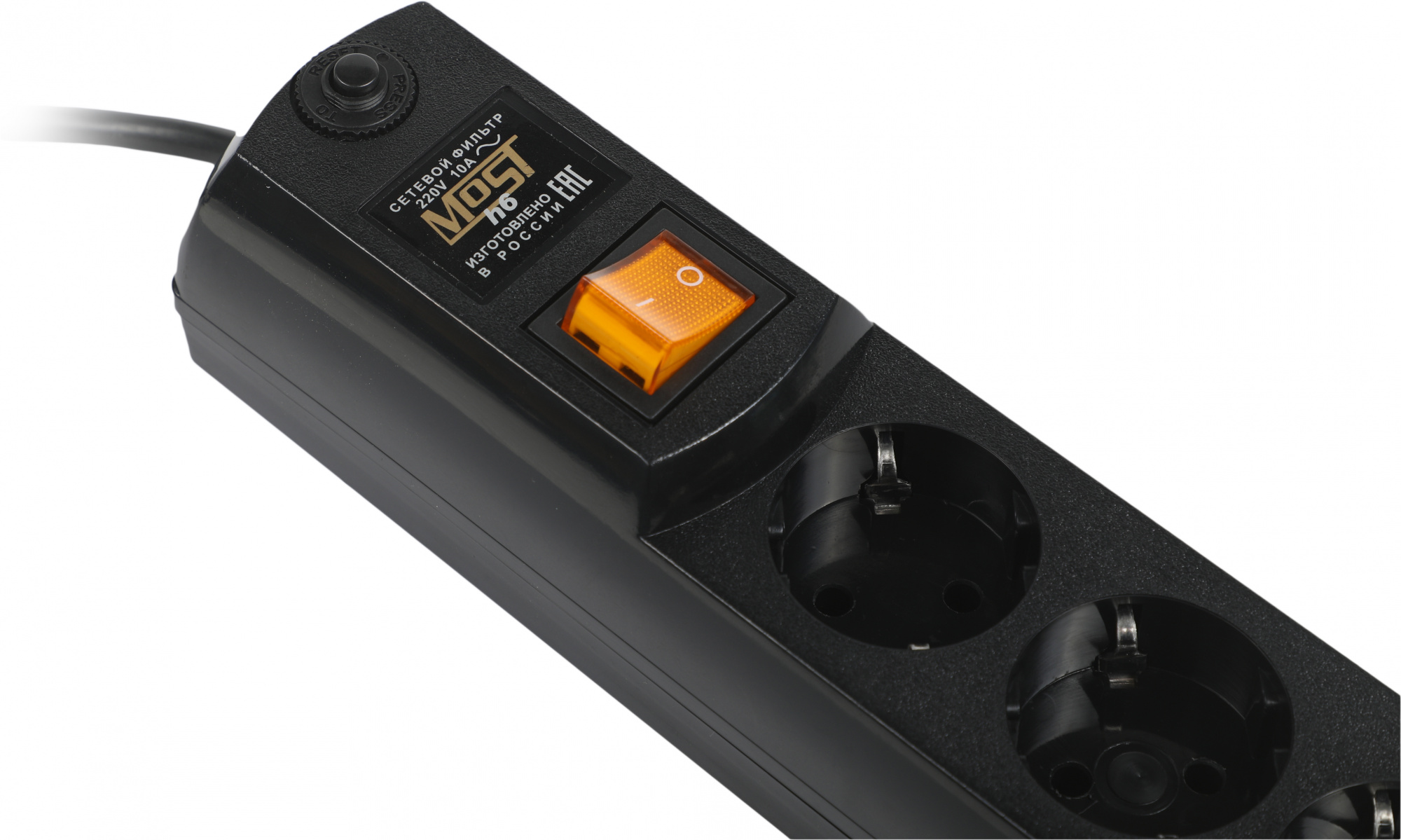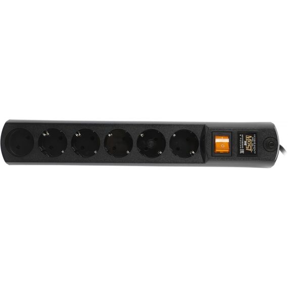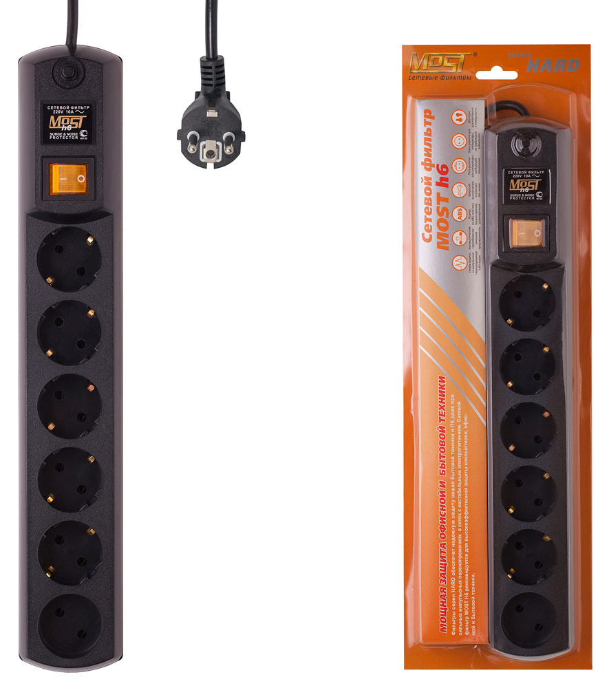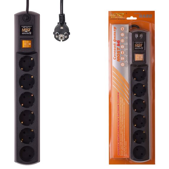 Сетевой фильтр Most H6-Ч 5М 5м (6 розеток) черный (коробка)